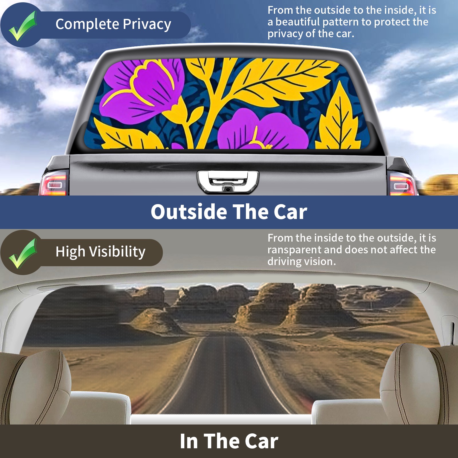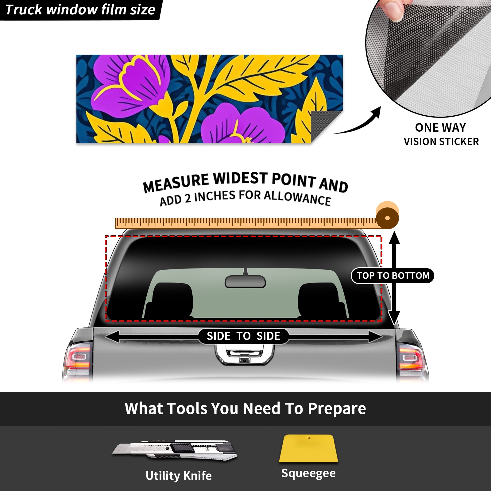 • ●<b>Truck Rear Window Graphics Decals Pickup Trucks Back Window Film Stickers 66" x 22" Perforated Vinyl Wrap Stickers Decorations for Car Rear Window.</b><br> <br> <b>Features :</b><br> - Size of the rear window decals for trucks is 66x22 Inches (168x56cm).<br> - High quality perforated vinyl window film, one way vision sticker.<br> - Perforated is see through from the inside but not from outside.<br> - Clear printing, waterproof and continued.<br> - The car back window graphics stickers fits most truck and makes your vehicle more beautiful.<br> <br> <b>【Installation Instructions】</b><br> <b>1. CLEAN SURFACE - </b>Clean the rear window thoroughly and make sure the surface clean.<br> <b>2. STICK THE DECALS - </b>Tear off the paper on the back and stick the decal on the window.<br> <b>3. SCRAPE OFF AIR BUBBLES - </b>Use a squeegee or other card to scrape off the excess air bubbles.<br> <b>4. TRIM THE EXCESS -</b> Use a knife to cut off the excess stickers of the window, finally complete.<br> 1. Please measure the size before purchasing, back window graphics decal for truck can be cut to your desired size.<br> 2.The graphics stickers for truck back window is a great gift for yourself also can as a birthday / halloween / christmas gift for your friends and family.<br> <b>Decorate Your Pickup Truck With Rear Window Decal Today!</b>
