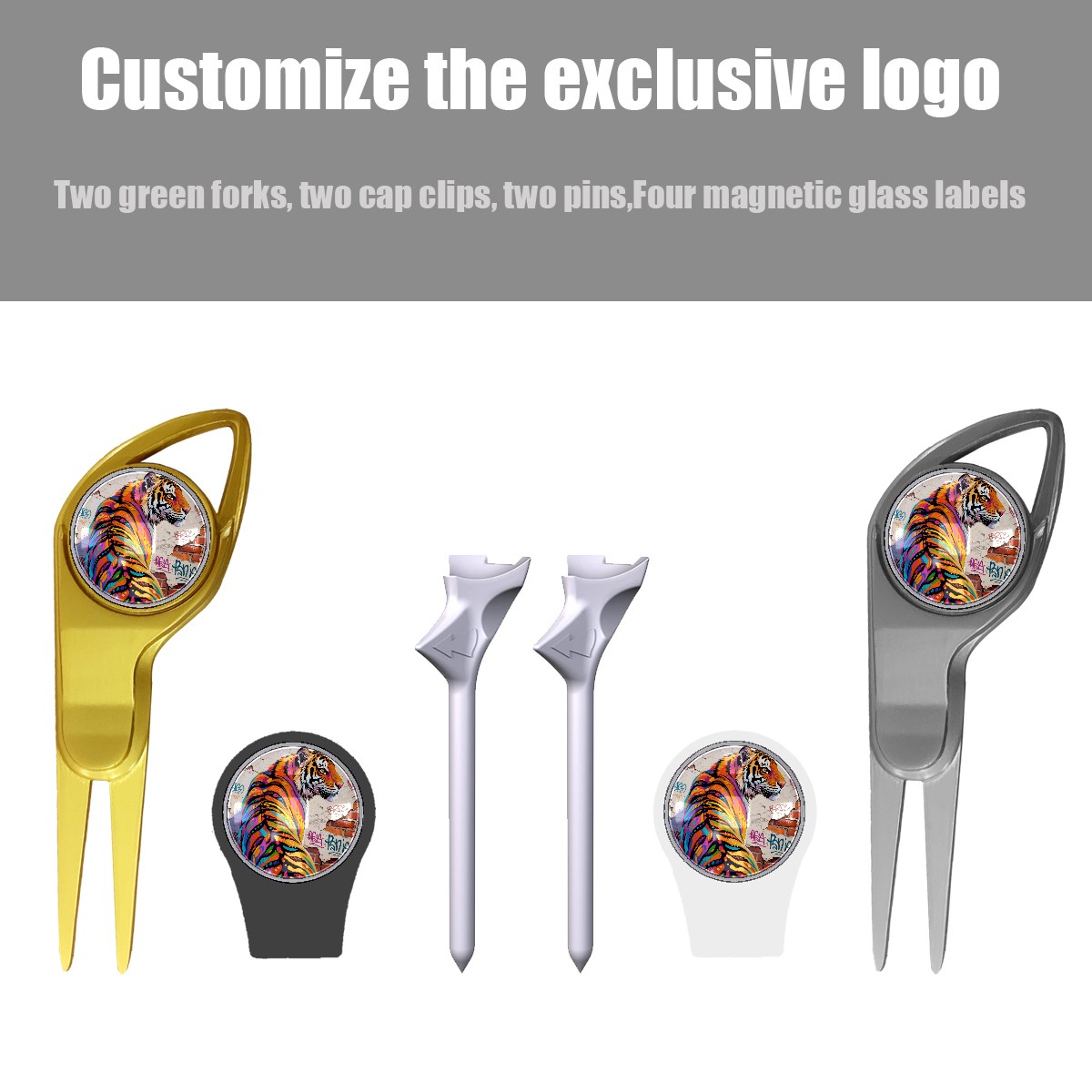 High-quality golf tees, Production of Oil Painting Tigers golf tees rakes, ball pickers and cleaning brush set, beautifully packaged, gift for golf enthusiasts (black and white models)