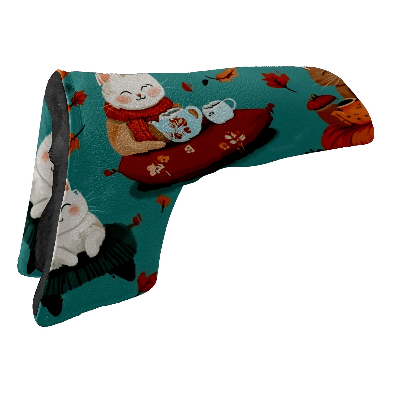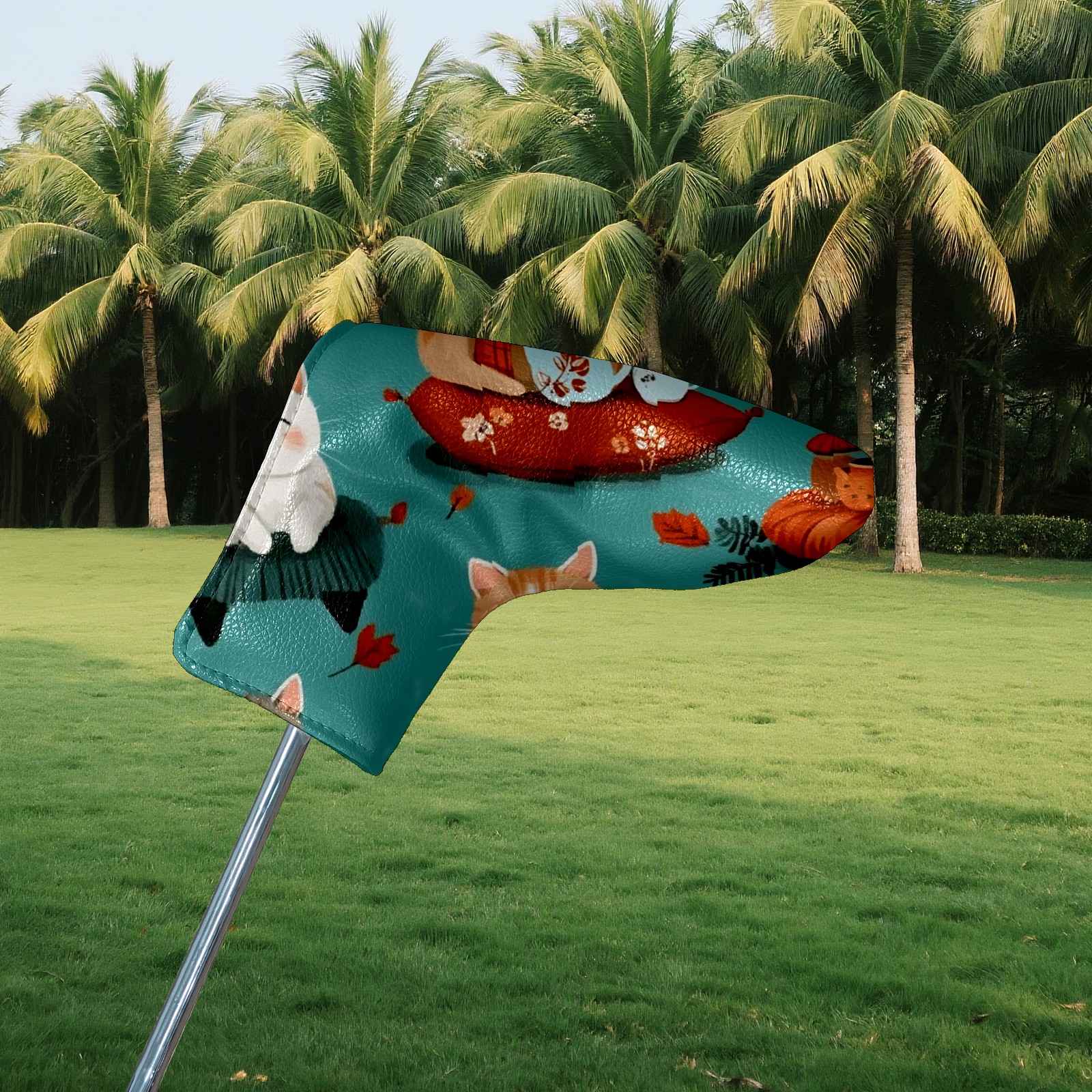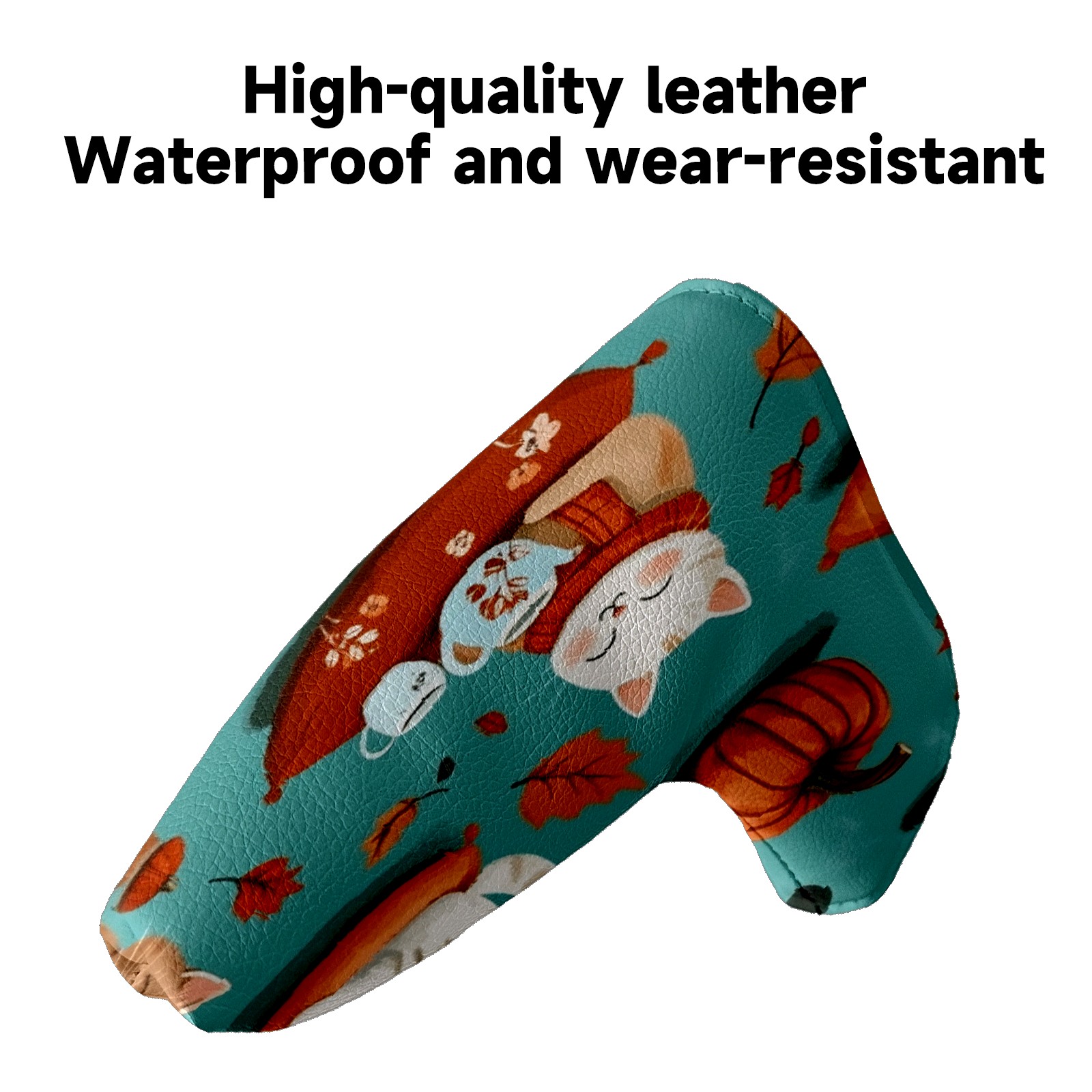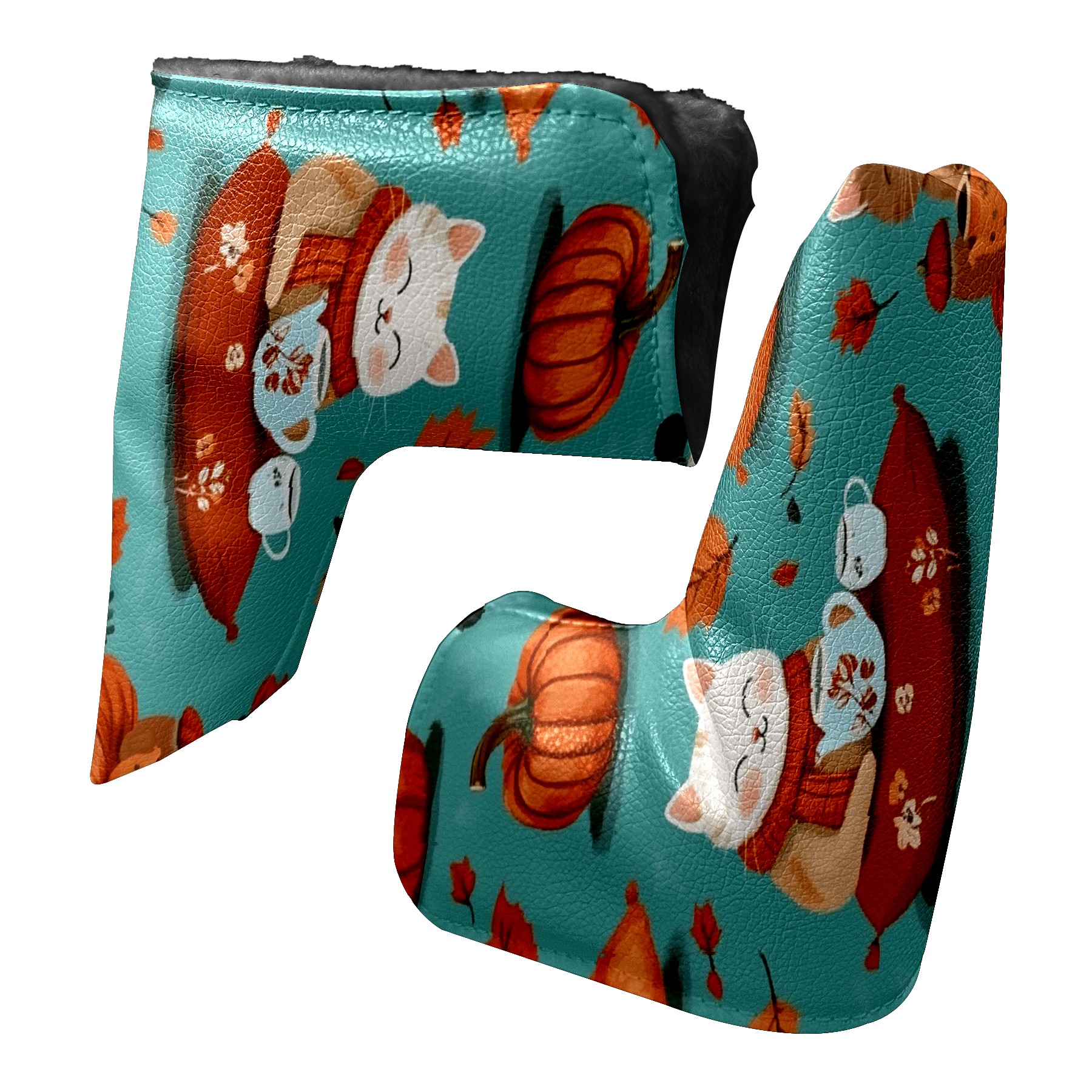 Golf Club Head Cover Golf Driver PU Fairway Wood Putter Head cover driver head cover Dad Gifts for Women Playful Cat And Pumpkin