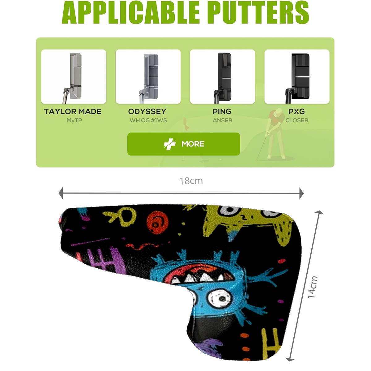 Professional Golf Club Head Covers Set for Blade Putter - Waterproof Design with Stretchable Fit, Universal Club Protection for Men & Women (Cute Cartoon Monsters)