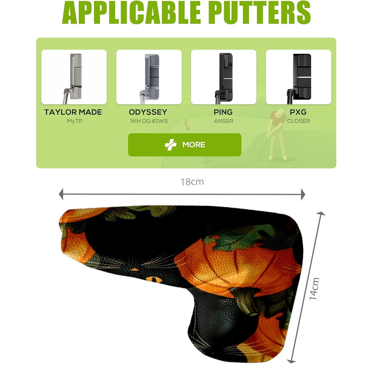 Golf Club Head Cover Golf Driver PU Fairway Wood Putter Head cover driver head cover Dad Gifts for Women Black Cats And Pumpkins