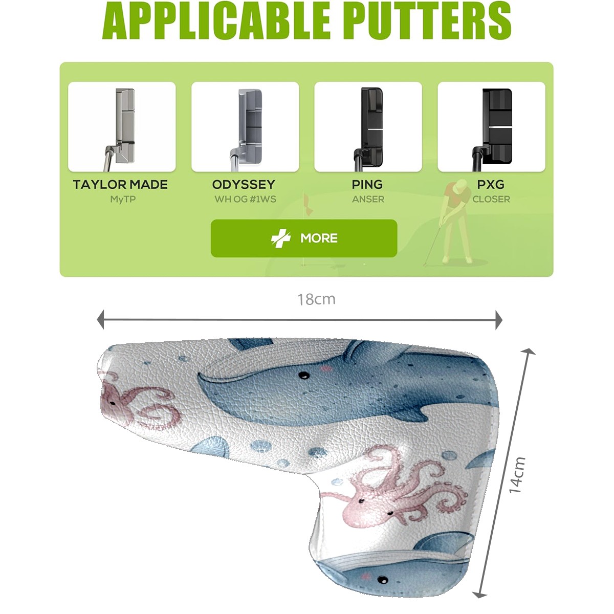 Golf Club Head Cover Golf Driver PU Fairway Wood Putter Head cover driver head cover Dad Gifts for Women Whales Octopus