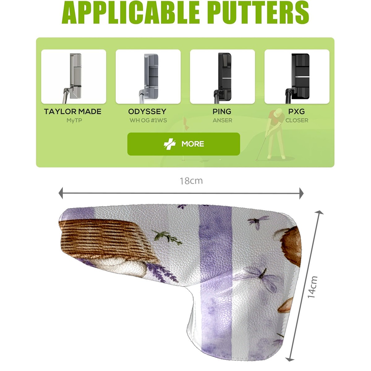 Golf Club Head Cover Golf Driver PU Fairway Wood Putter Head cover driver head cover Dad Gifts for Women Bunnies And Lavender