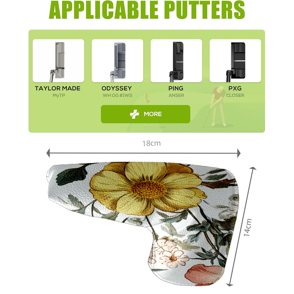 Golf Club Head Cover Golf Driver PU Fairway Wood Putter Head cover driver head cover Dad Gifts for Women Yellow Pink Flowers