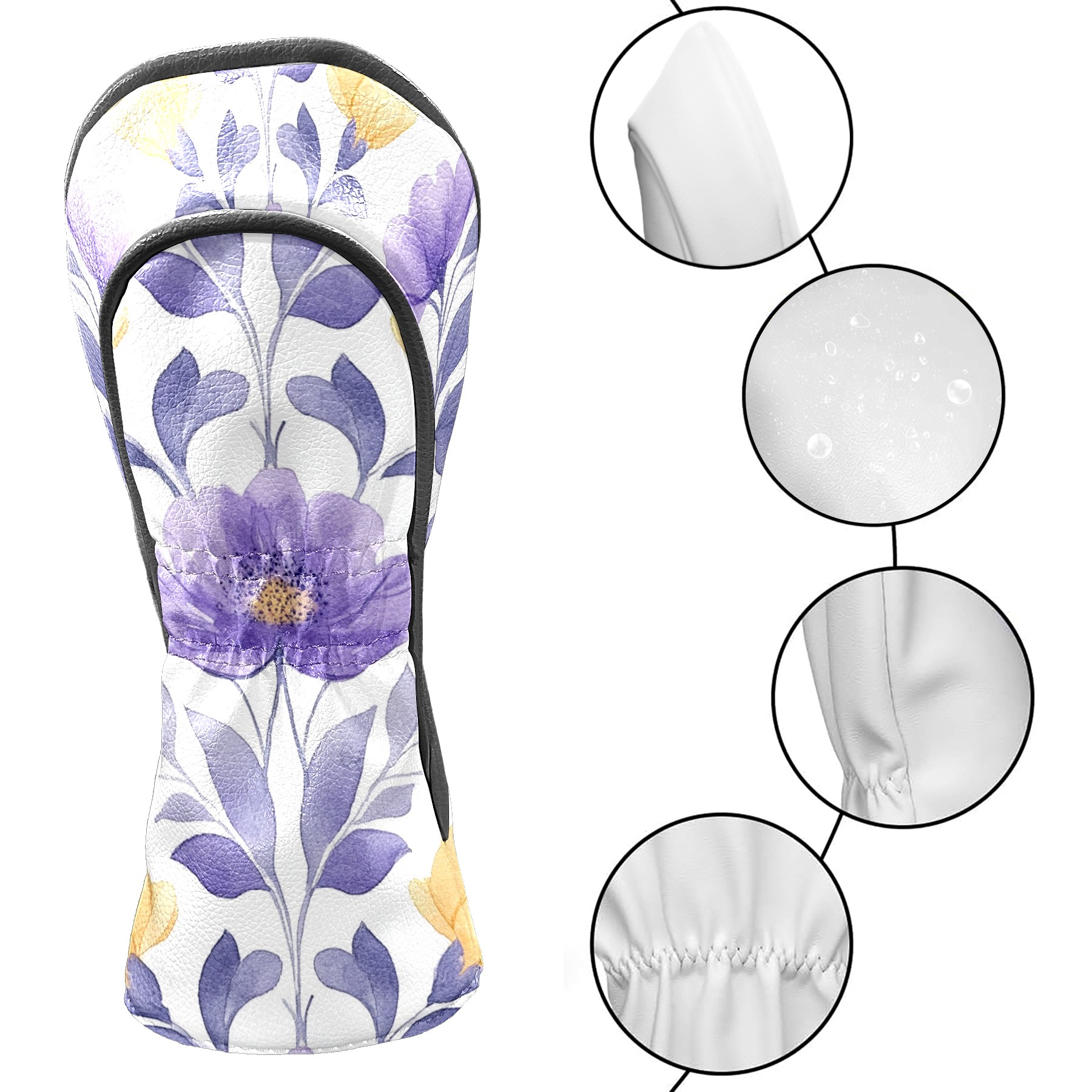 Golf Club Head Cover Golf Club Covers For driver club cover waterproof Head covers Yellow Purple Floral