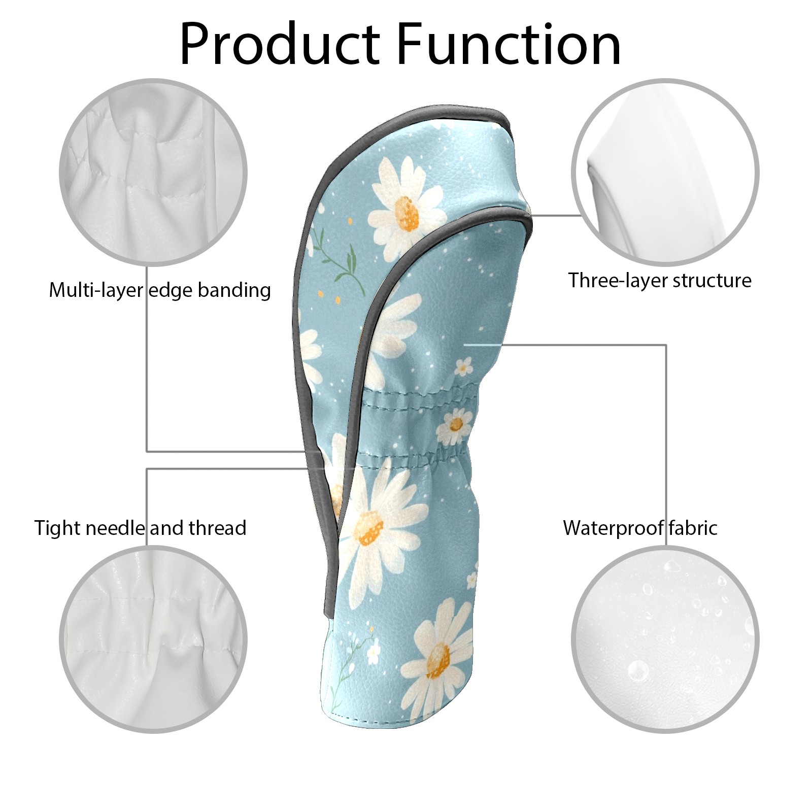Golf Club Head Cover Golf Club Covers For driver club cover waterproof Head covers White Daisies