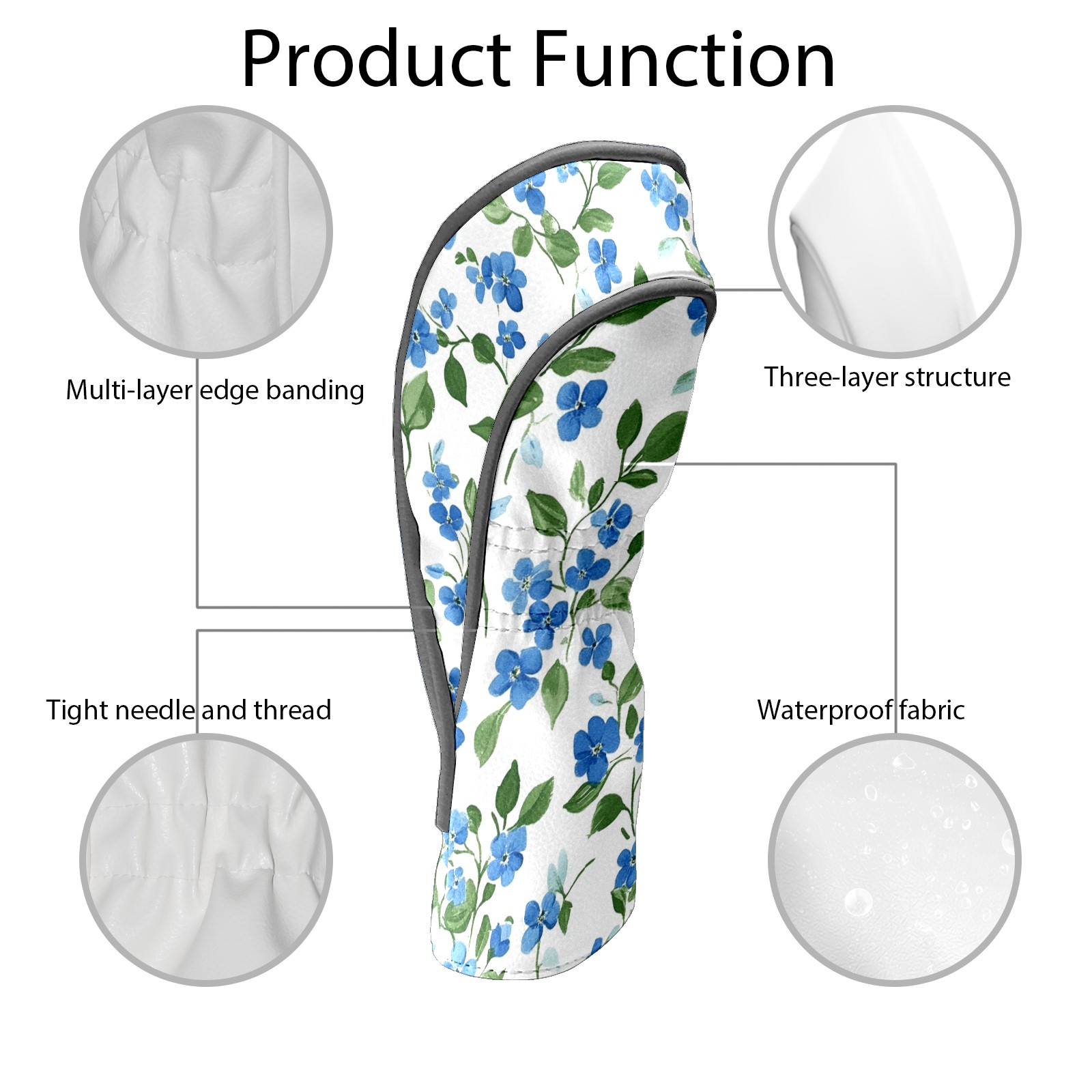 Golf Club Head Cover Golf Club Covers For driver club cover waterproof Head covers Blue Forget-me-not Pattern