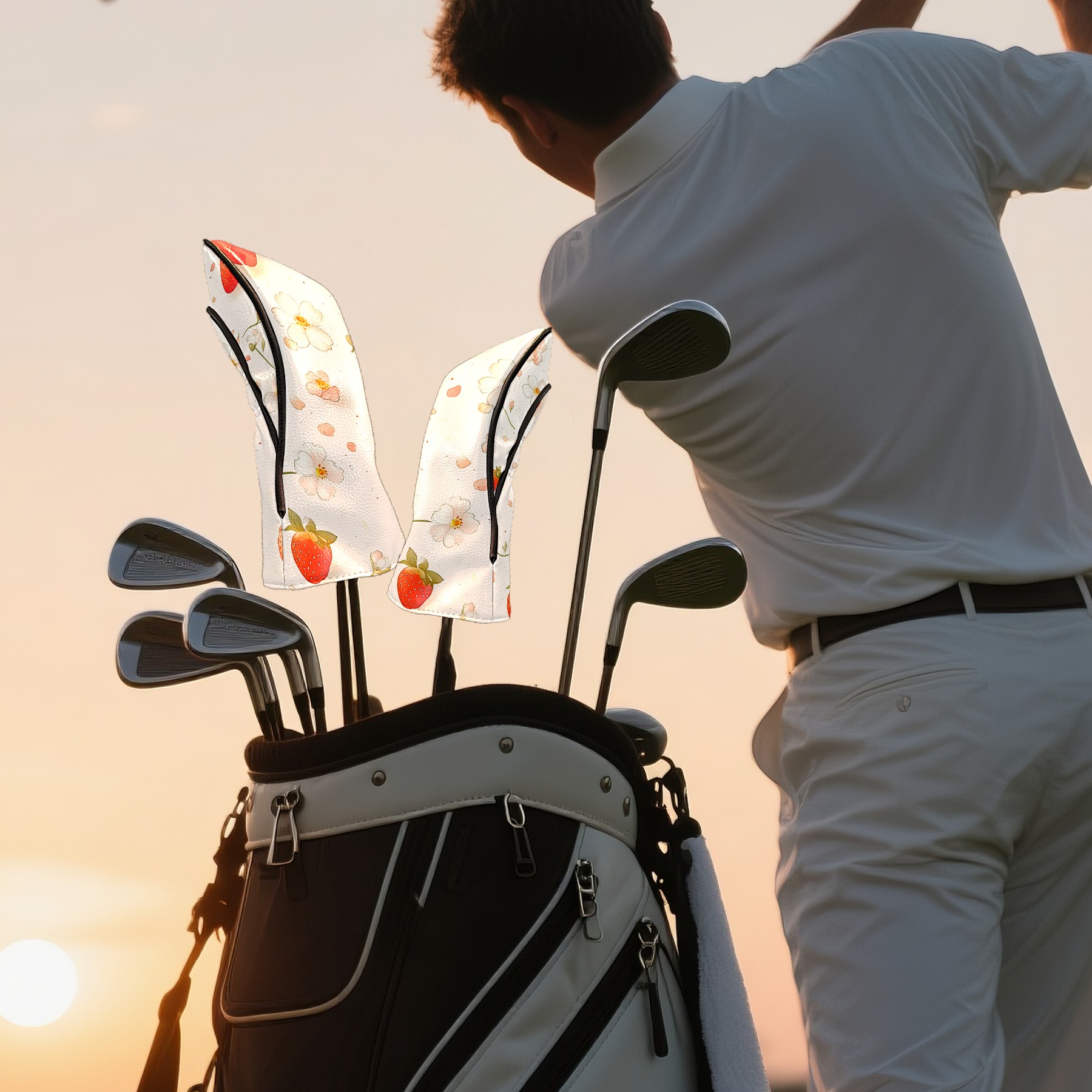 Golf Club Head Cover Golf Club Covers For driver club cover waterproof Head covers Cute Tiny Strawberry Pattern