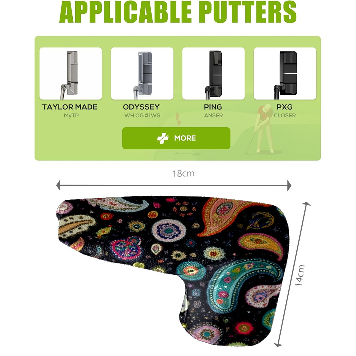 Professional Golf Club Head Covers Set for Blade Putter - Waterproof Design with Stretchable Fit, Universal Club Protection for Men & Women (Colorful Paisley)