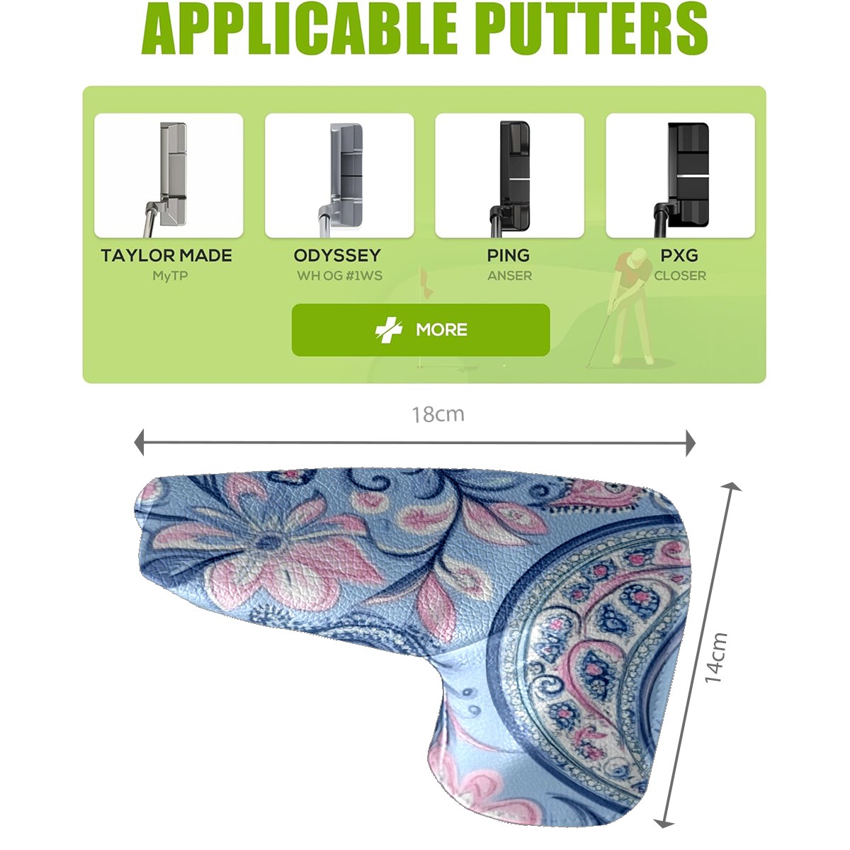 Professional Golf Club Head Covers Set for Blade Putter - Waterproof Design with Stretchable Fit, Universal Club Protection for Men & Women (Blue Paisley)