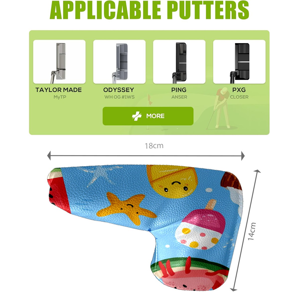 Professional Golf Club Head Covers Set for Blade Putter - Waterproof Design with Stretchable Fit, Universal Club Protection for Men & Women (Ice Cream And Watermelon)