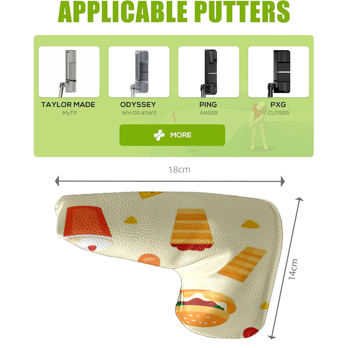 Professional Golf Club Head Covers Set for Blade Putter - Waterproof Design with Stretchable Fit, Universal Club Protection for Men & Women (Fast Food Pattern)