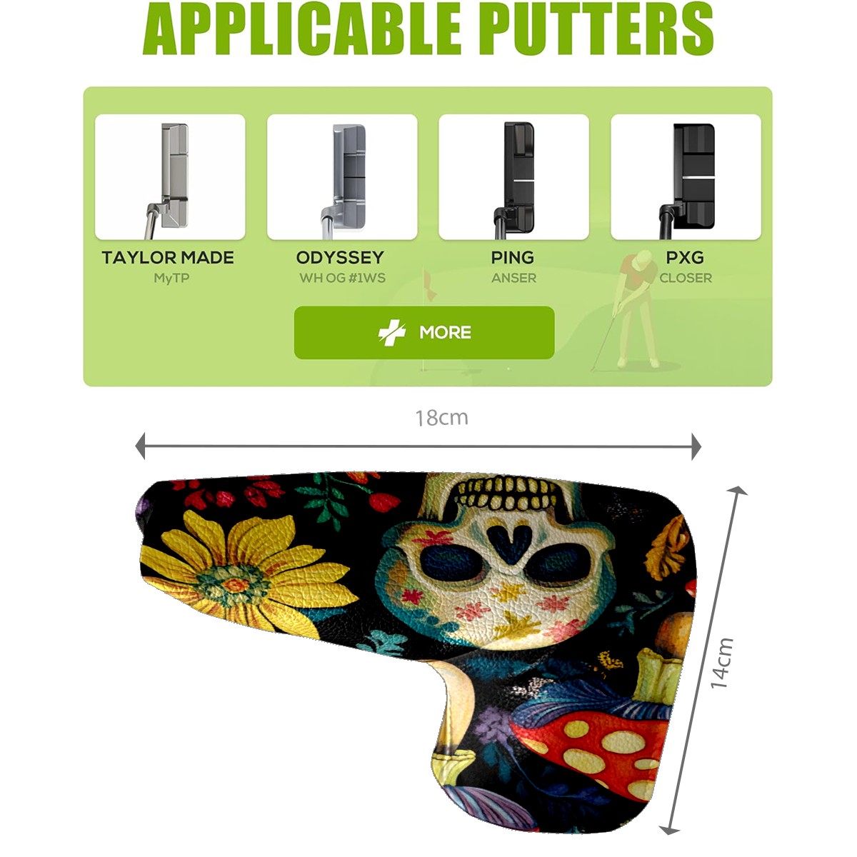 Professional Golf Club Head Covers Set for Blade Putter - Waterproof Design with Stretchable Fit, Universal Club Protection for Men & Women (Skulls And Mushroom)