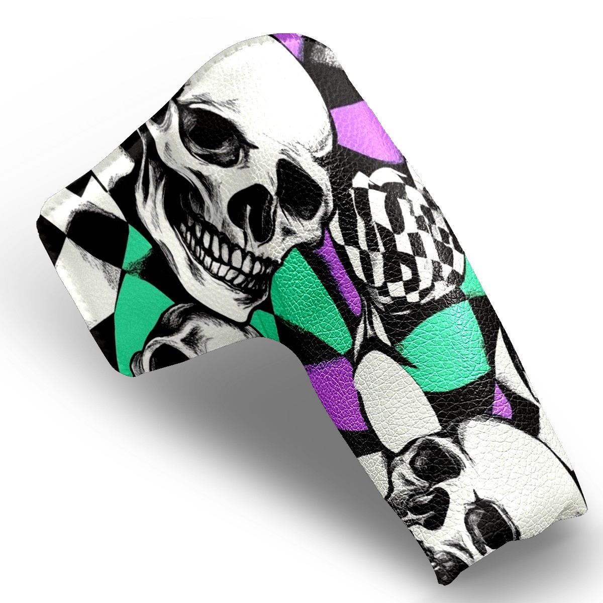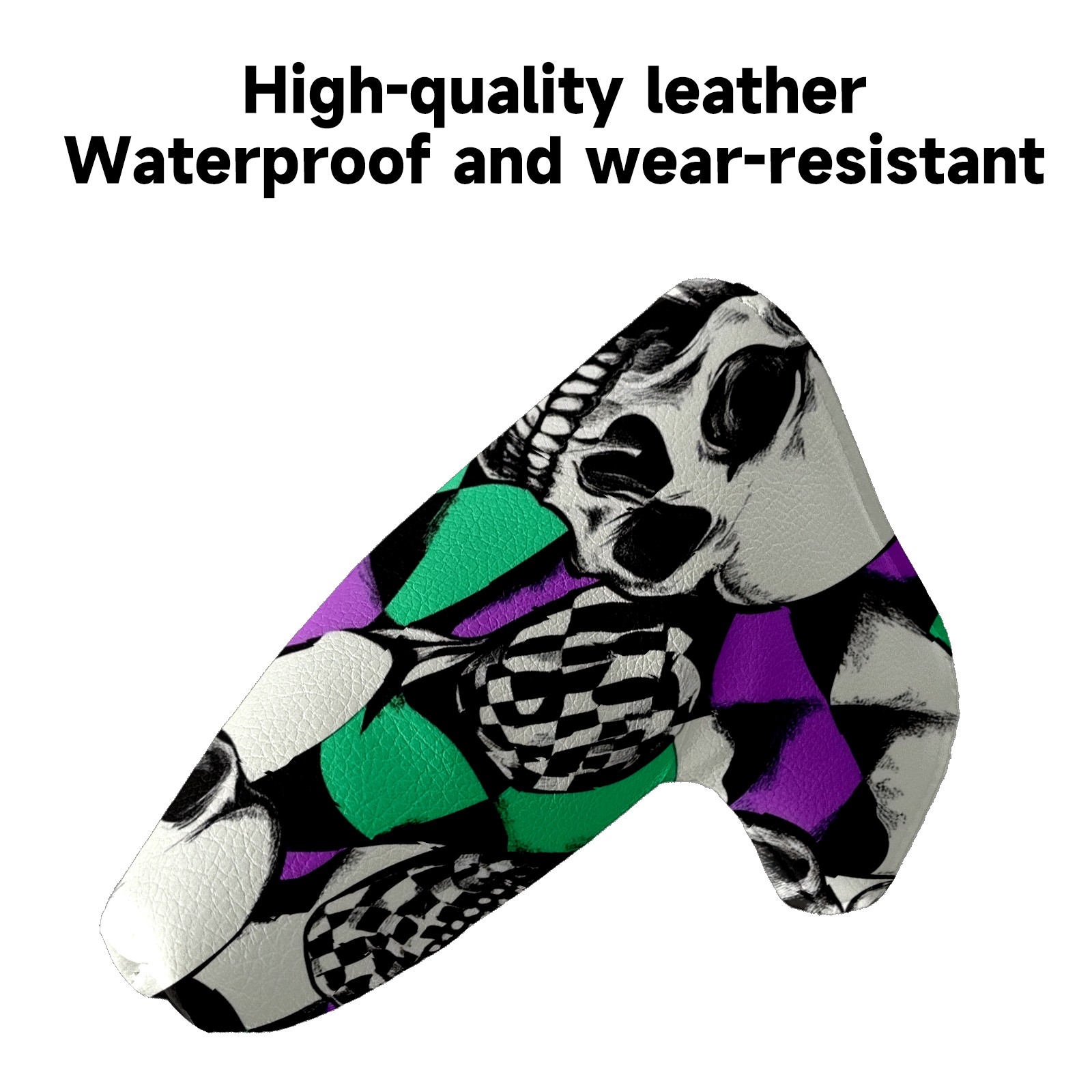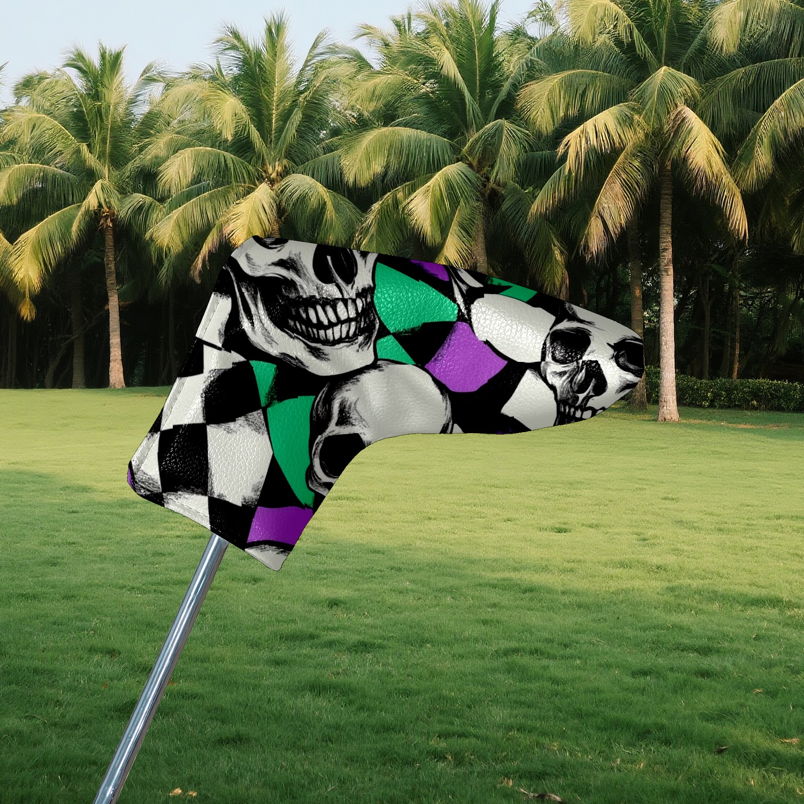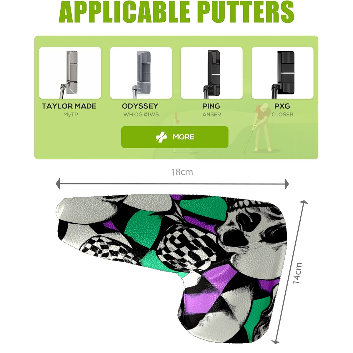 Professional Golf Club Head Covers Set for Blade Putter - Waterproof Design with Stretchable Fit, Universal Club Protection for Men & Women (Skulls And Checkered Flag)