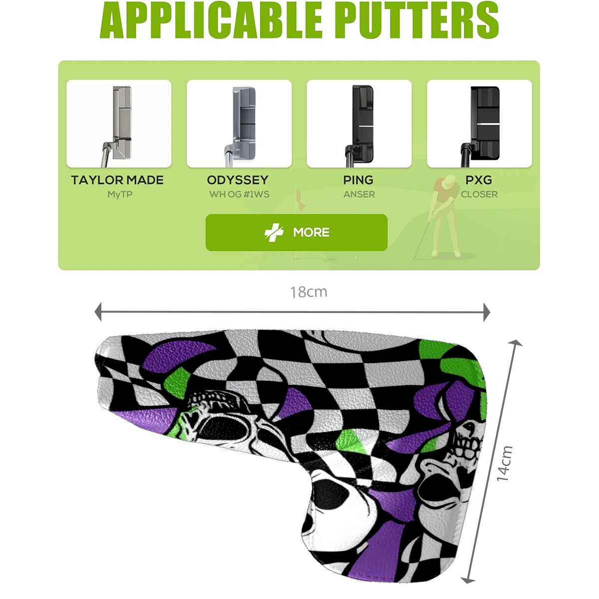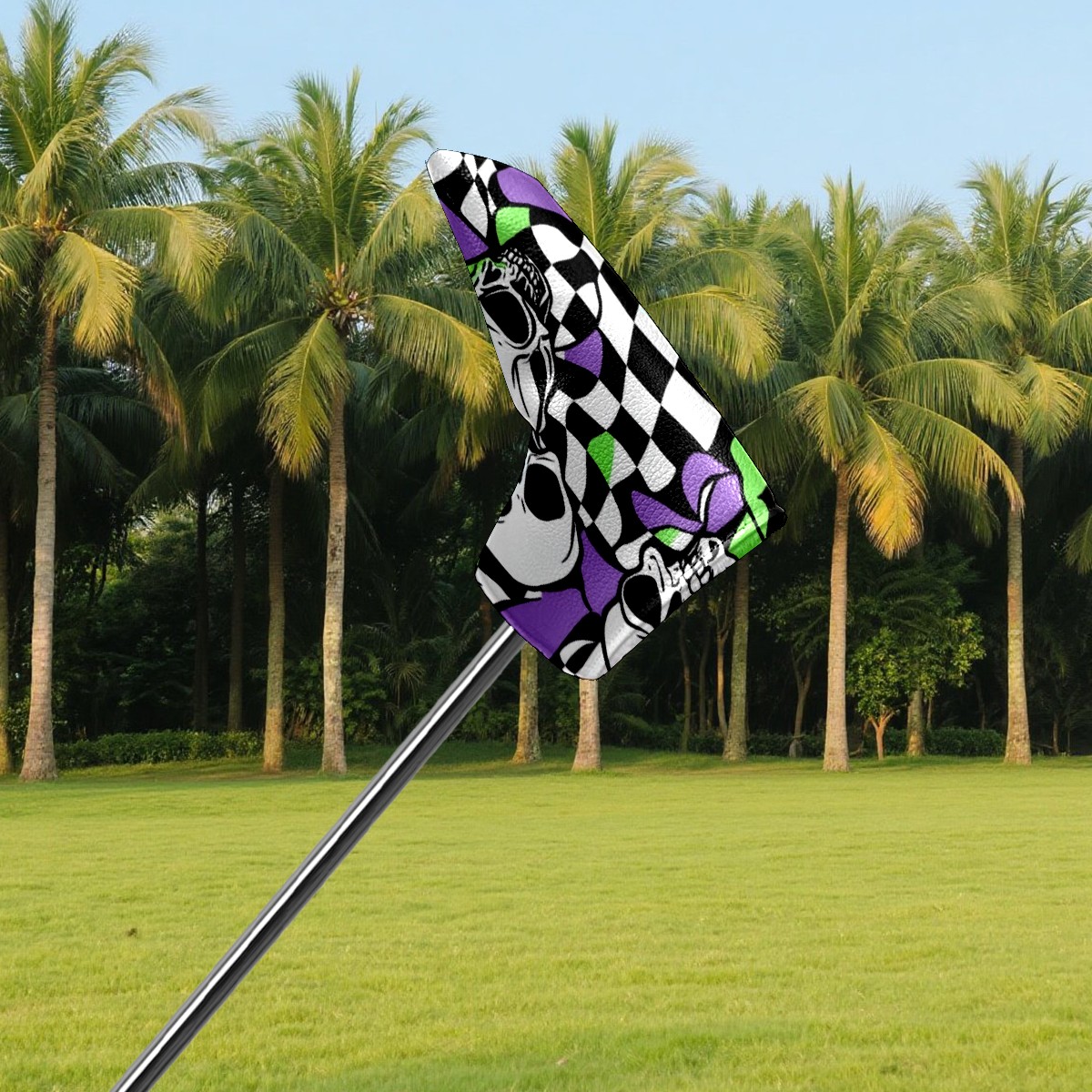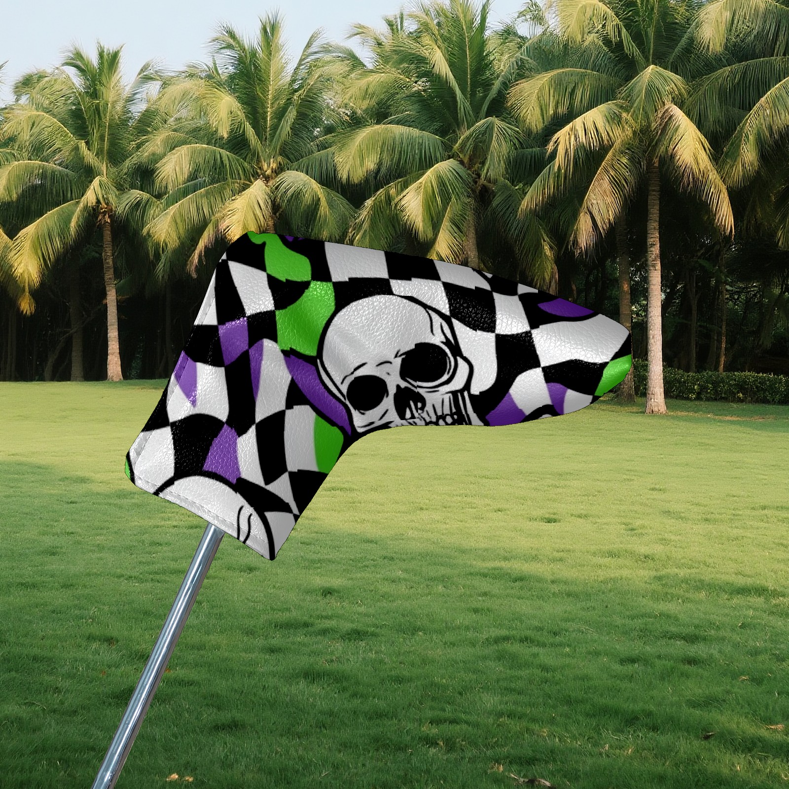 Professional Golf Club Head Covers Set for Blade Putter - Waterproof Design with Stretchable Fit, Universal Club Protection for Men & Women (Skulls And Checkered Flags)