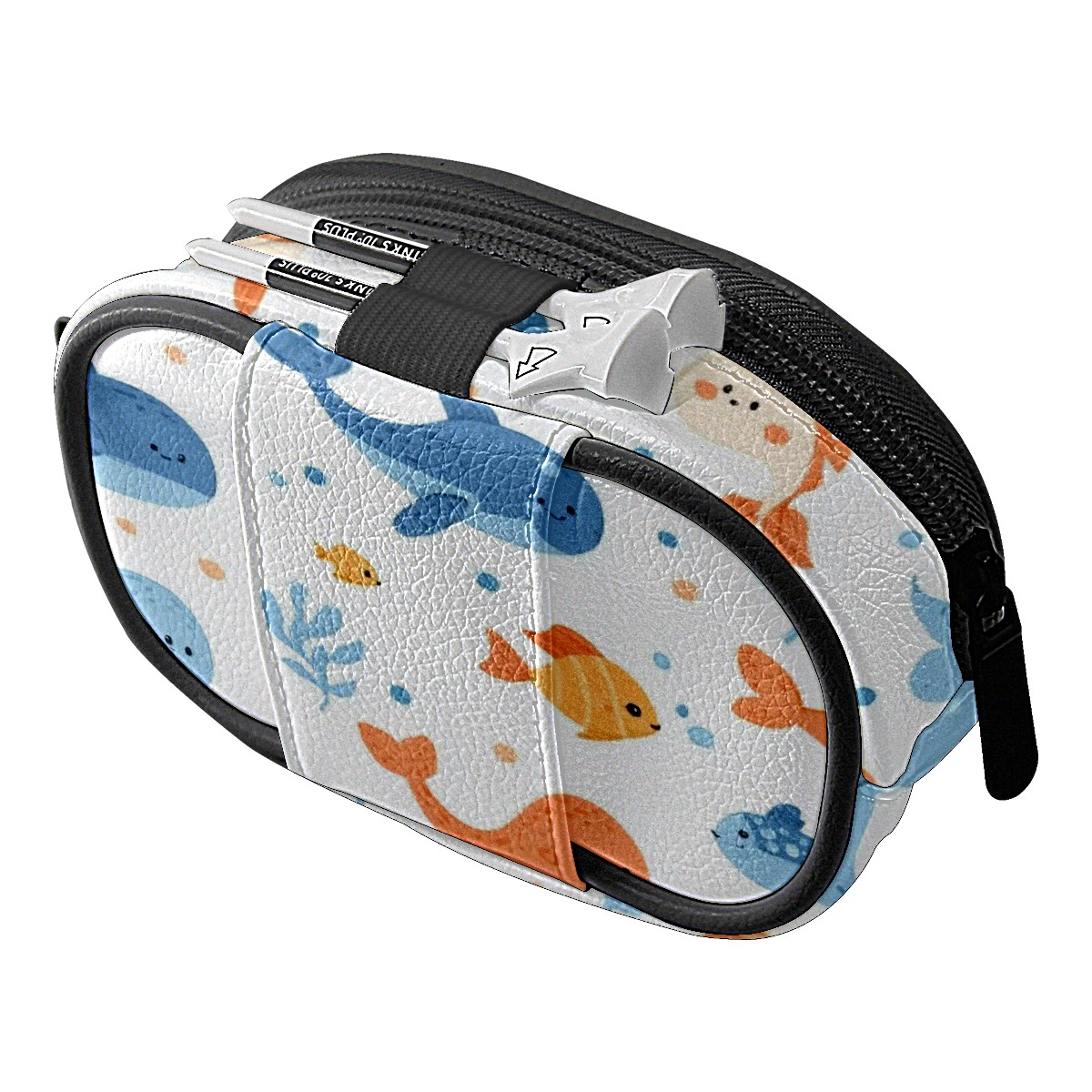 Golf Ball Waist Bag PU Leather Golf Ball Pouch with Belt Clip, Portable Golf Tee Holder & Golf Accessories for Men Women, Golfing Fanny Pack for Balls Tees Valuables (Sea Animals)