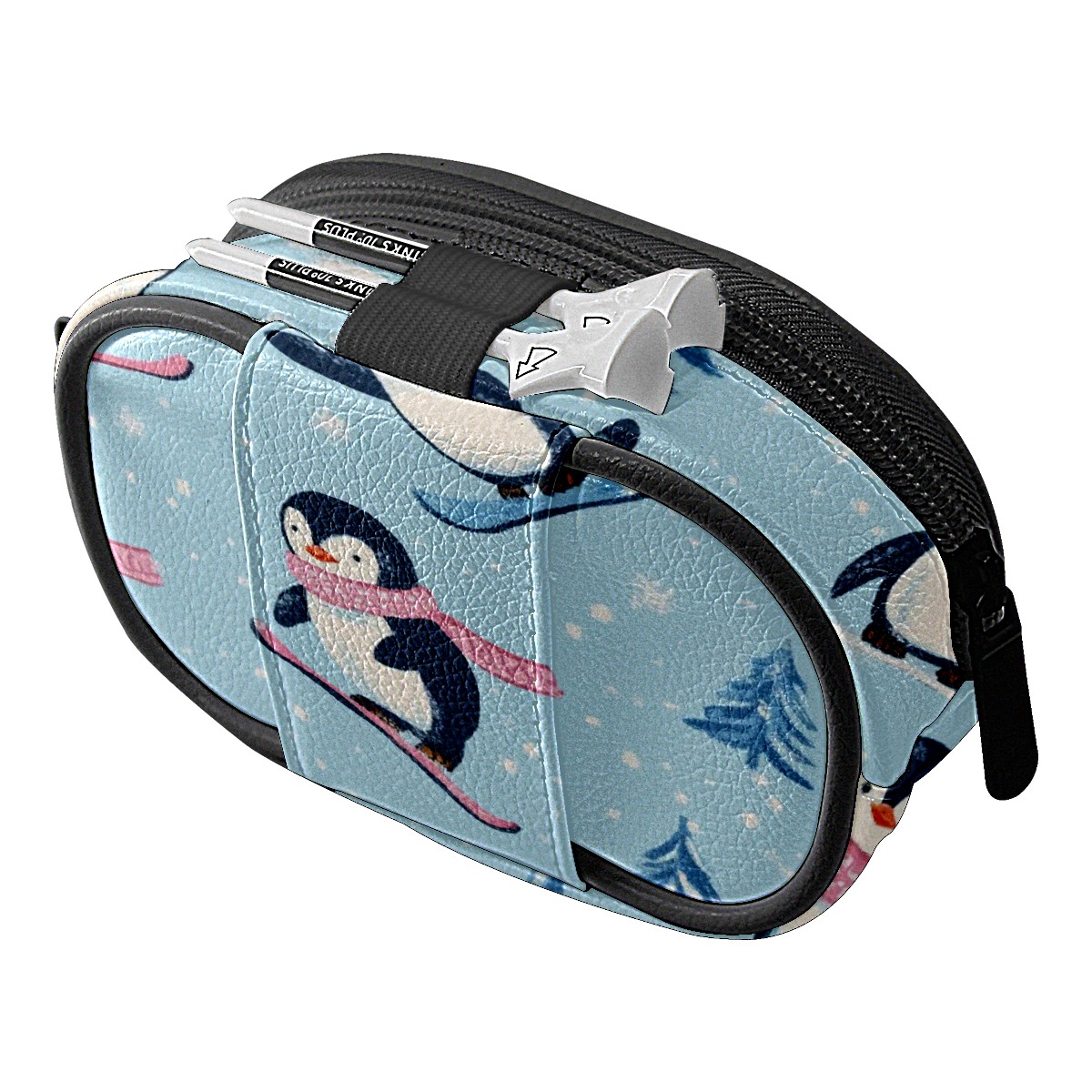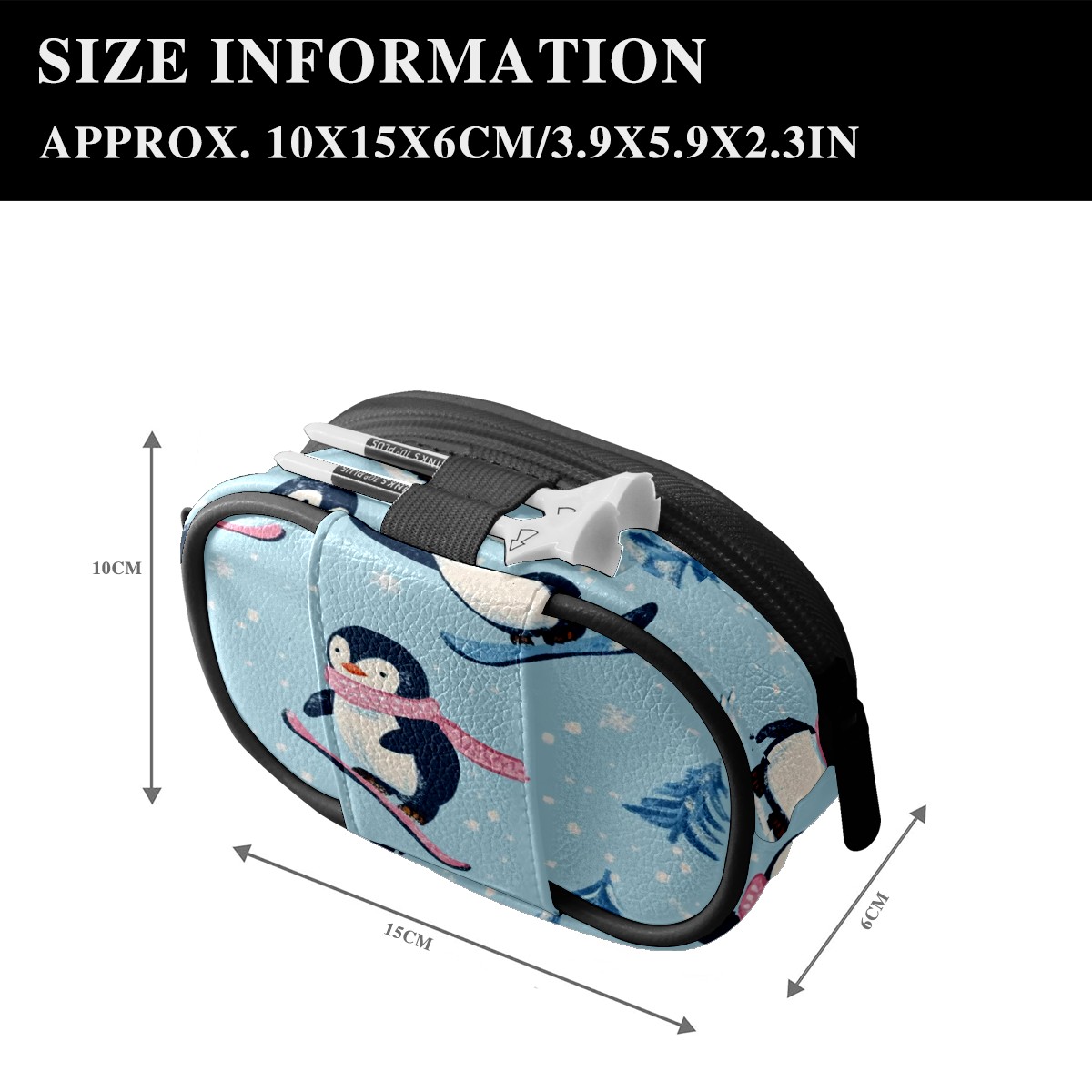Golf Ball Waist Bag PU Leather Golf Ball Pouch with Belt Clip, Portable Golf Tee Holder & Golf Accessories for Men Women, Golfing Fanny Pack for Balls Tees Valuables (Playful Penguins)
