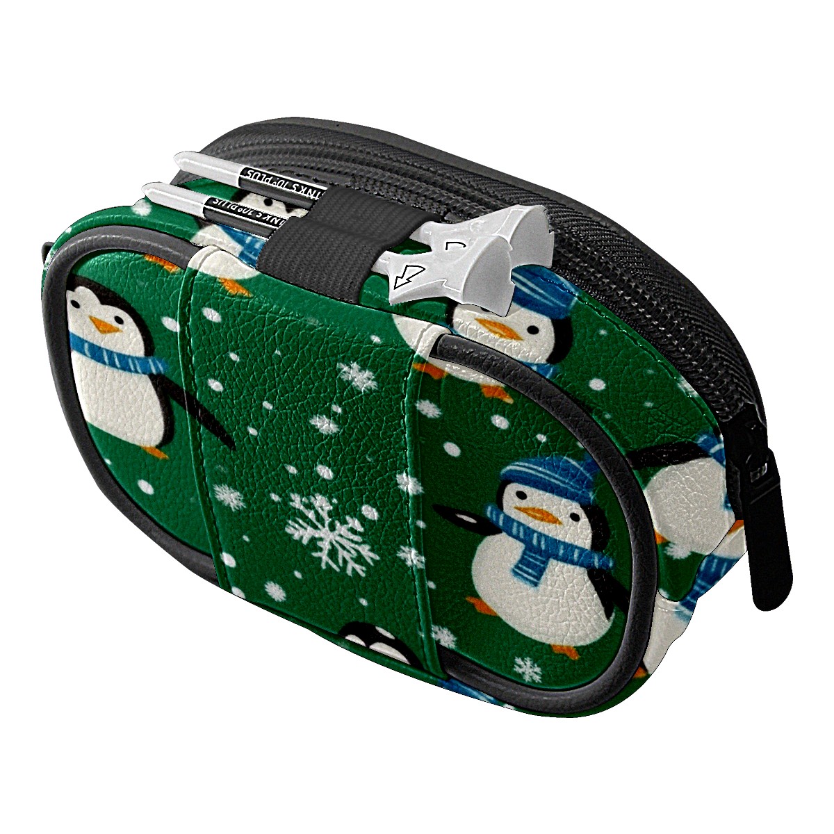 Golf Ball Waist Bag PU Leather Golf Ball Pouch with Belt Clip, Portable Golf Tee Holder & Golf Accessories for Men Women, Golfing Fanny Pack for Balls Tees Valuables (Penguins And Snowmen)