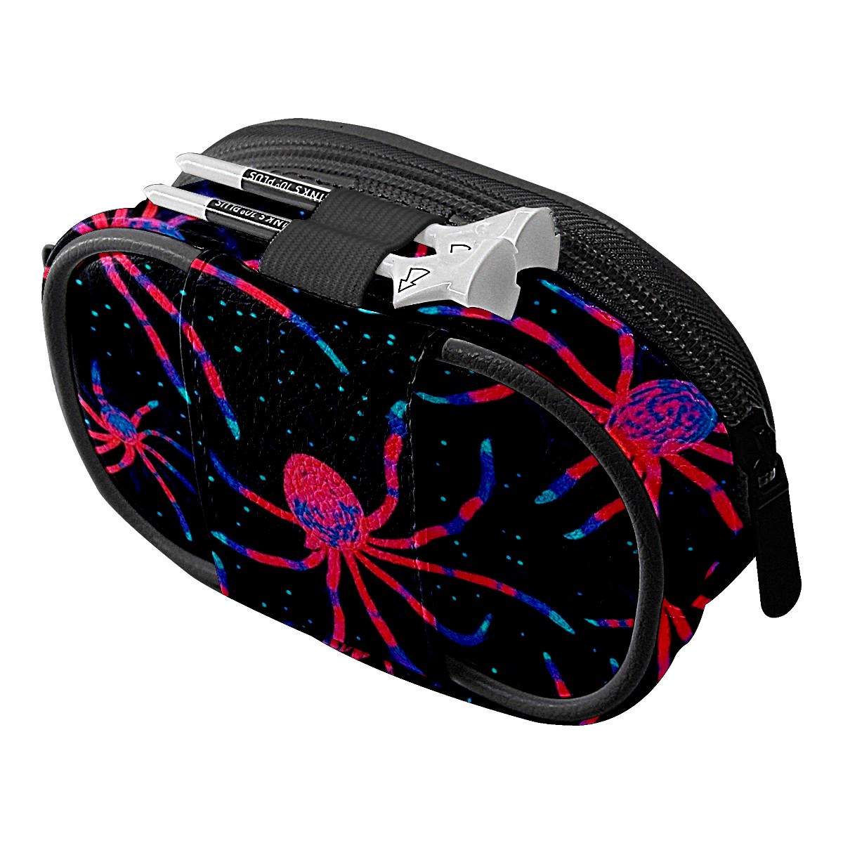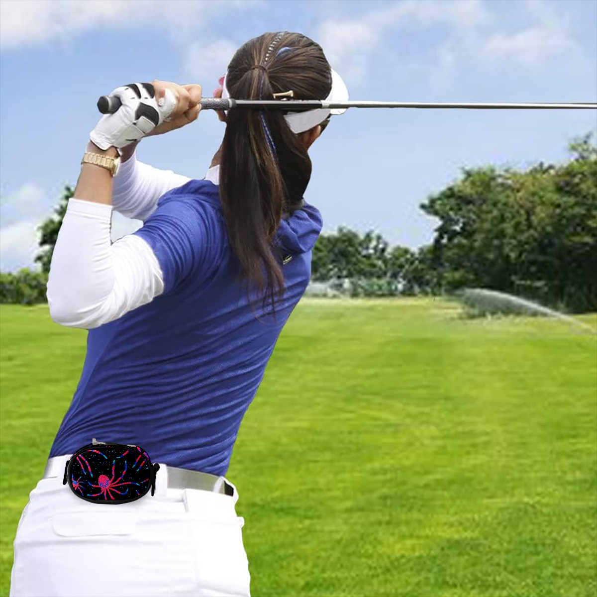 Golf Ball Waist Bag PU Leather Golf Ball Pouch with Belt Clip, Portable Golf Tee Holder & Golf Accessories for Men Women, Golfing Fanny Pack for Balls Tees Valuables (Neon Red And Blue Spider)