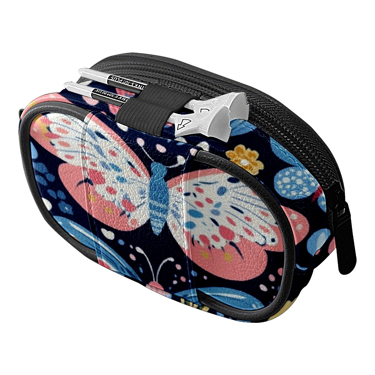 Golf Ball Waist Bag PU Leather Golf Ball Pouch with Belt Clip, Portable Golf Tee Holder & Golf Accessories for Men Women, Golfing Fanny Pack for Balls Tees Valuables (Playful Butterflies And Flowers)