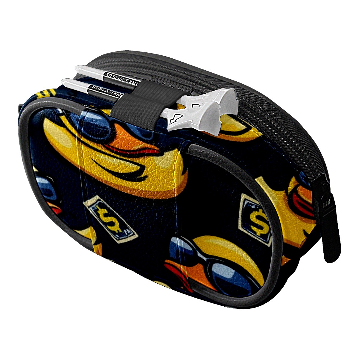 Golf Ball Waist Bag PU Leather Golf Ball Pouch with Belt Clip, Portable Golf Tee Holder & Golf Accessories for Men Women, Golfing Fanny Pack for Balls Tees Valuables (Ducks Wearing Sunglasses)