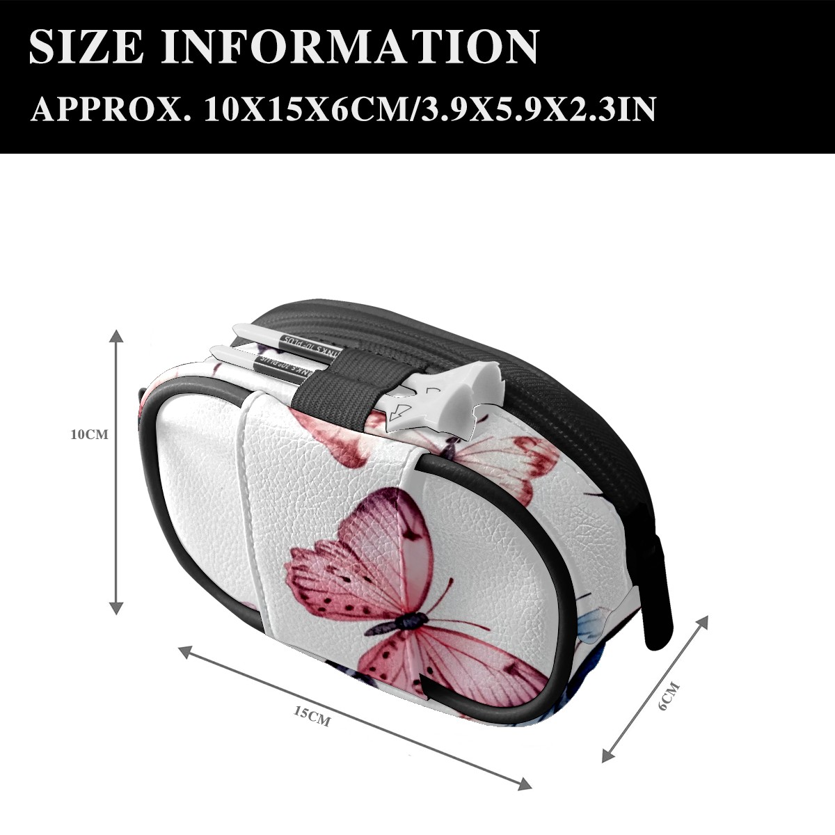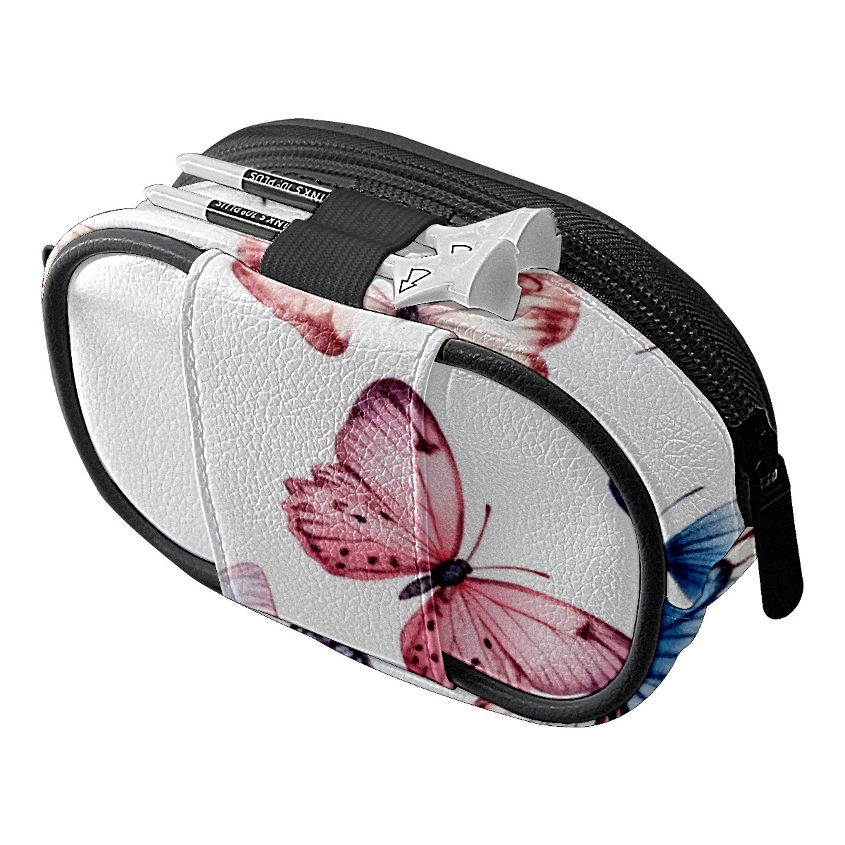 Golf Ball Waist Bag PU Leather Golf Ball Pouch with Belt Clip, Portable Golf Tee Holder & Golf Accessories for Men Women, Golfing Fanny Pack for Balls Tees Valuables (Pink Blue And White Butterflies)