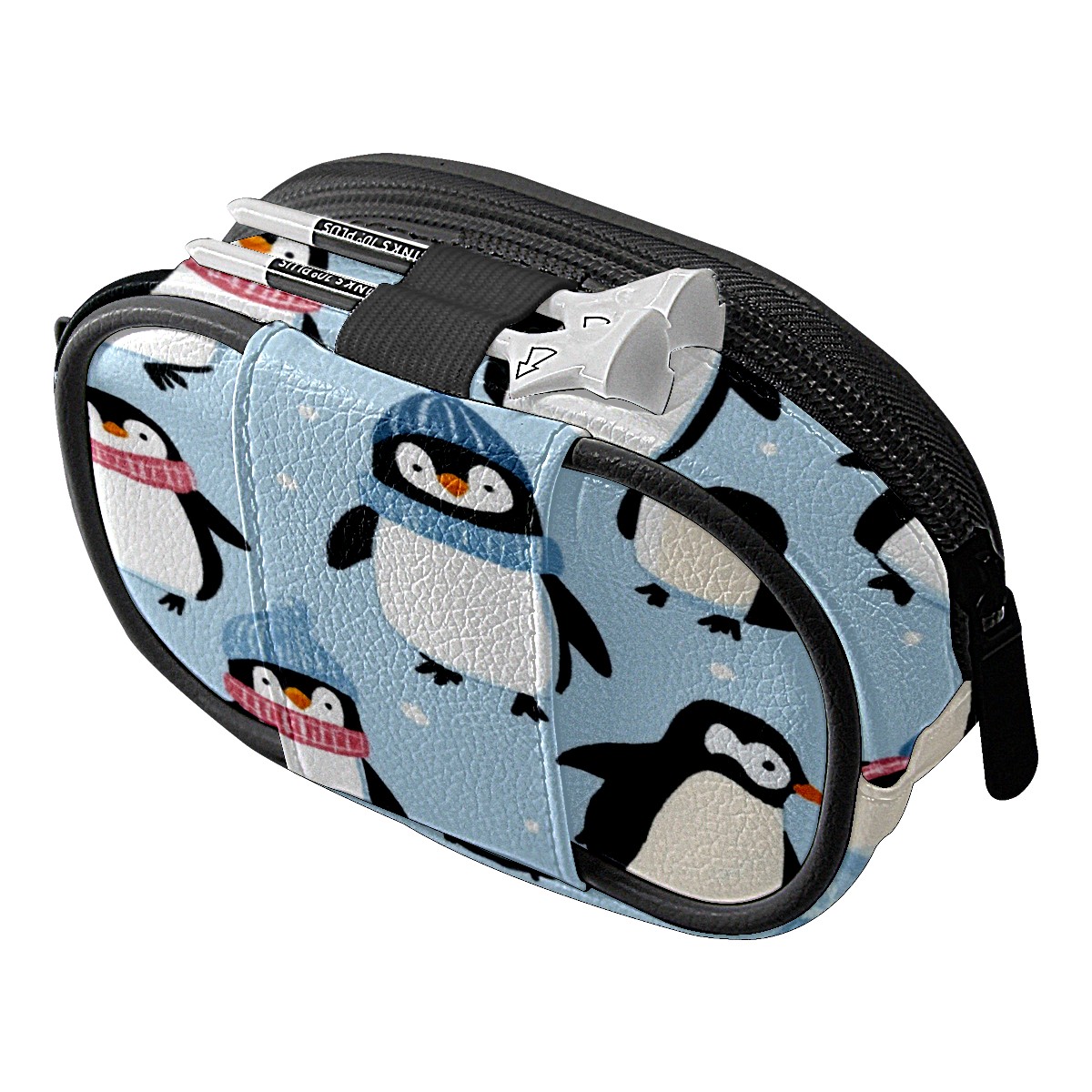 Golf Ball Waist Bag PU Leather Golf Ball Pouch with Belt Clip, Portable Golf Tee Holder & Golf Accessories for Men Women, Golfing Fanny Pack for Balls Tees Valuables (Cute Penguins)