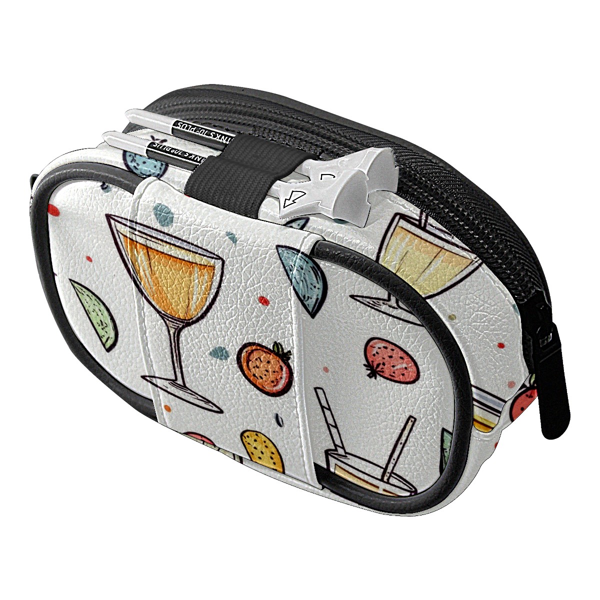 Golf Ball Waist Bag PU Leather Golf Ball Pouch with Belt Clip, Portable Golf Tee Holder & Golf Accessories for Men Women, Golfing Fanny Pack for Balls Tees Valuables (Champagne Glasses Pattern)