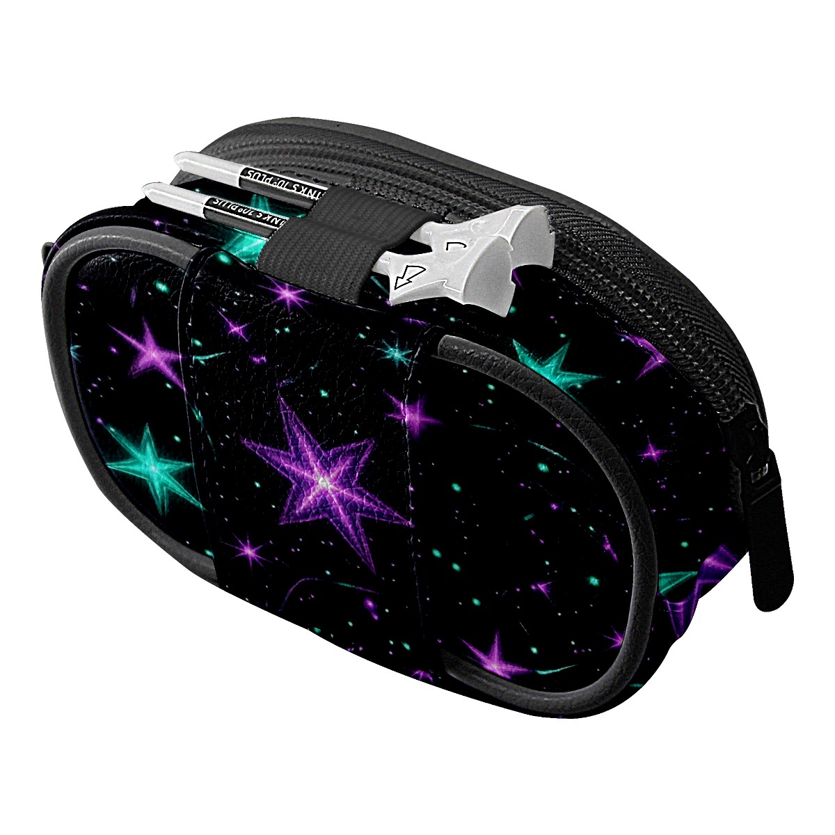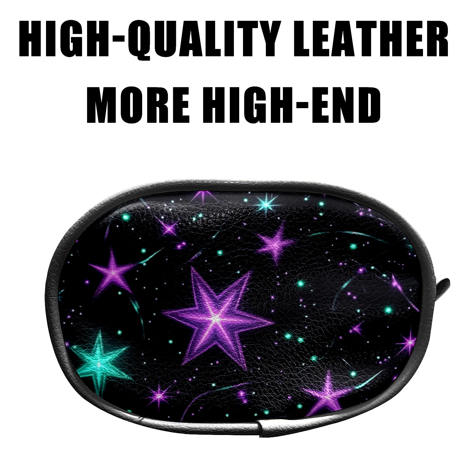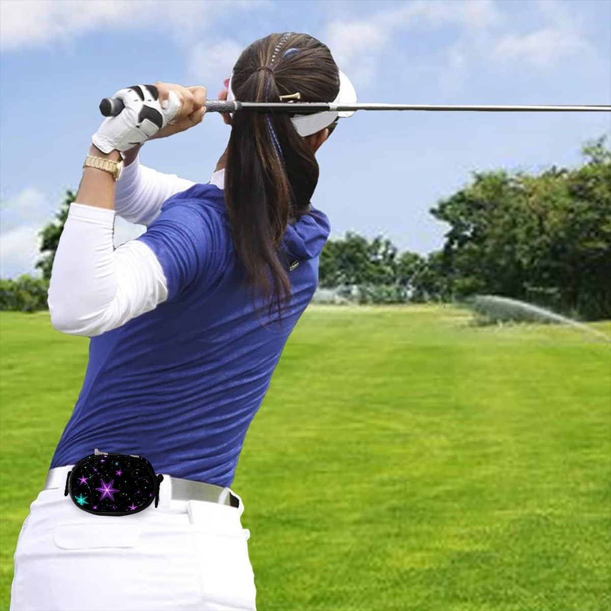 Golf Ball Waist Bag PU Leather Golf Ball Pouch with Belt Clip, Portable Golf Tee Holder & Golf Accessories for Men Women, Golfing Fanny Pack for Balls Tees Valuables (Glowing Purple And Teal Stars)