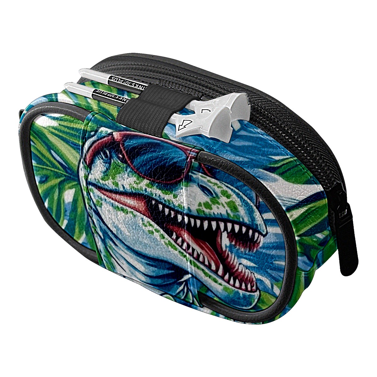 Golf Ball Waist Bag PU Leather Golf Ball Pouch with Belt Clip, Portable Golf Tee Holder & Golf Accessories for Men Women, Golfing Fanny Pack for Balls Tees Valuables (T-rex Wearing Sunglasses)