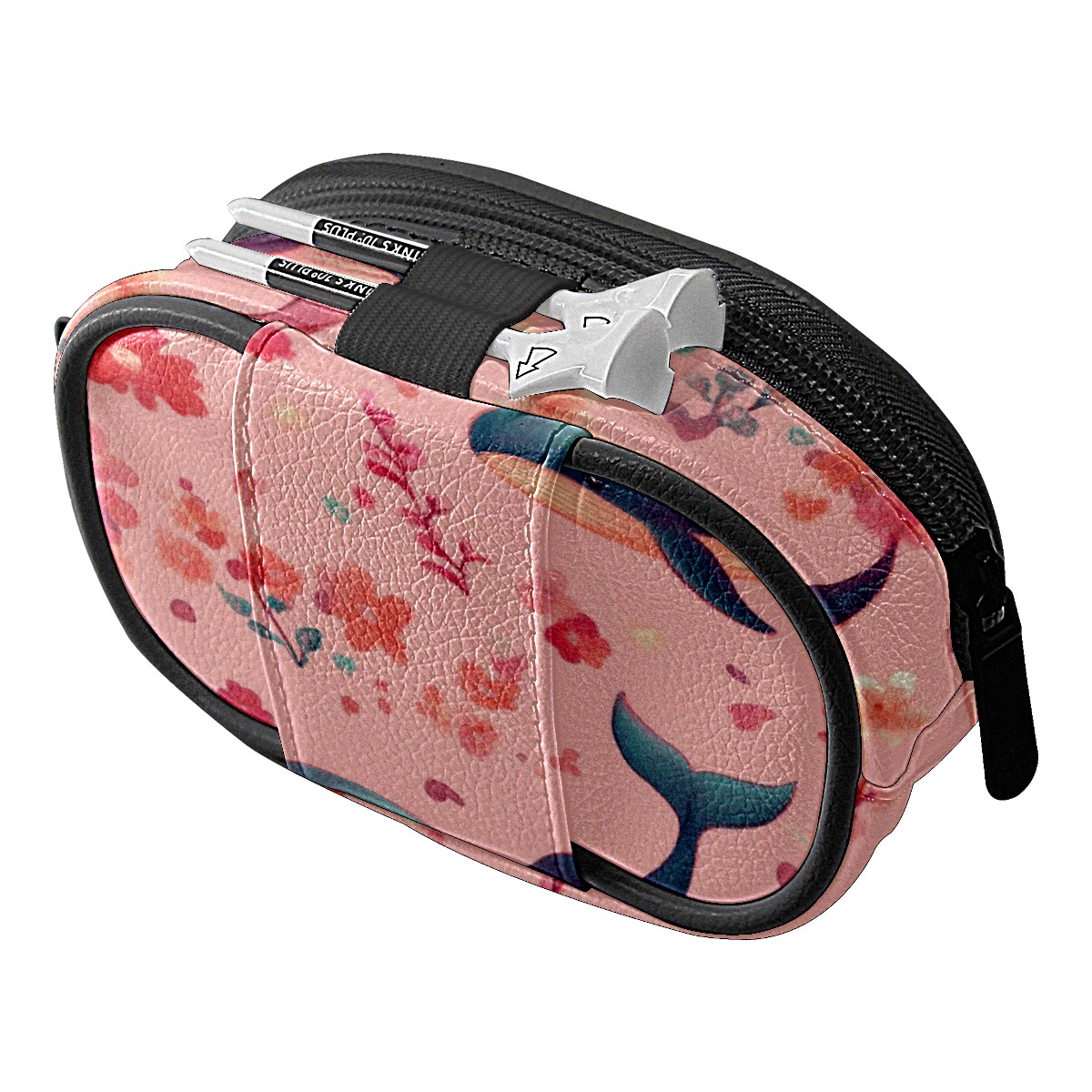 Golf Ball Waist Bag PU Leather Golf Ball Pouch with Belt Clip, Portable Golf Tee Holder & Golf Accessories for Men Women, Golfing Fanny Pack for Balls Tees Valuables (Pastel-pink Whale)