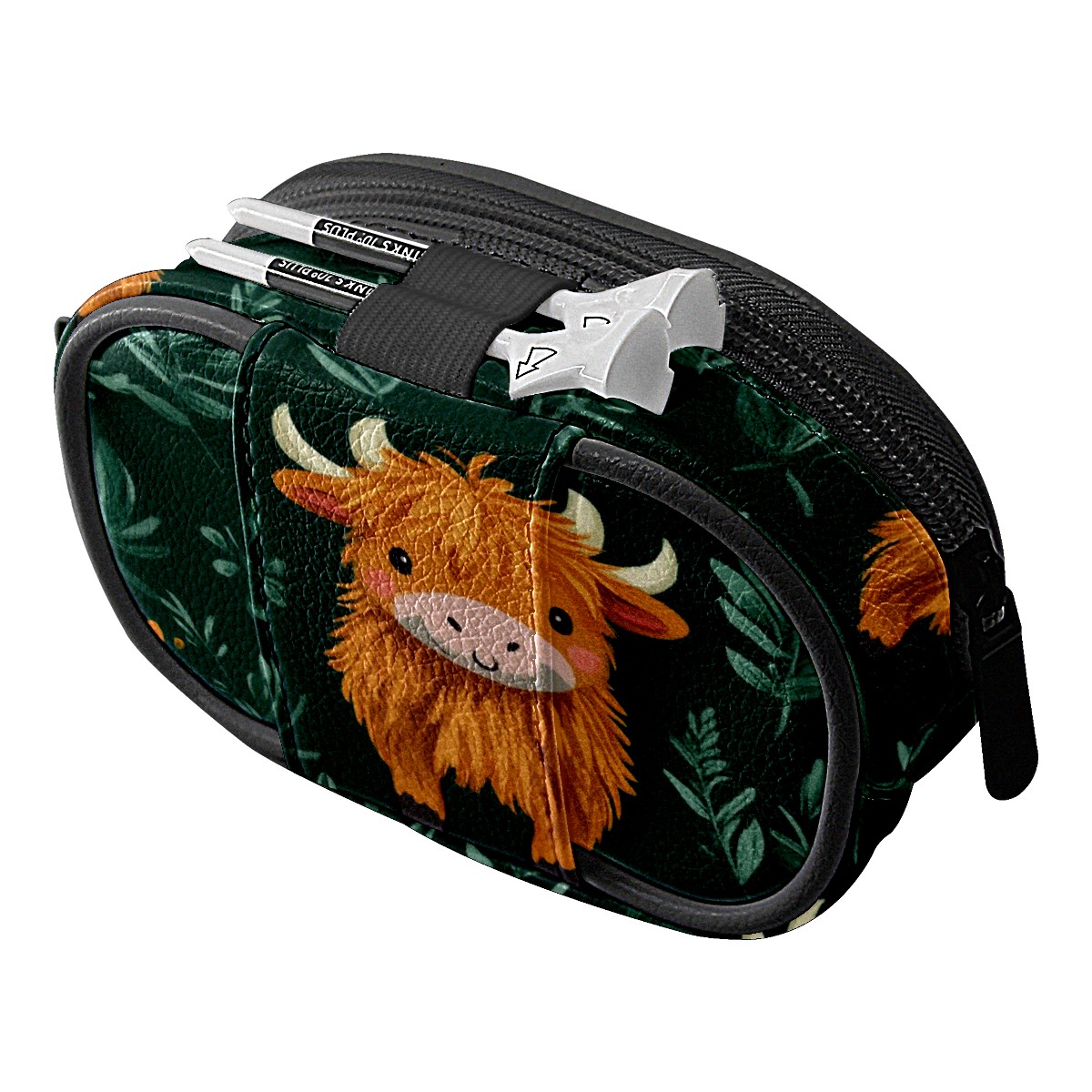 Golf Ball Waist Bag PU Leather Golf Ball Pouch with Belt Clip, Portable Golf Tee Holder & Golf Accessories for Men Women, Golfing Fanny Pack for Balls Tees Valuables (Highland Cow)