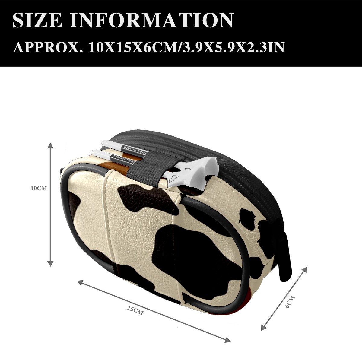 Golf Ball Waist Bag PU Leather Golf Ball Pouch with Belt Clip, Portable Golf Tee Holder & Golf Accessories for Men Women, Golfing Fanny Pack for Balls Tees Valuables (Cow Print Pattern)