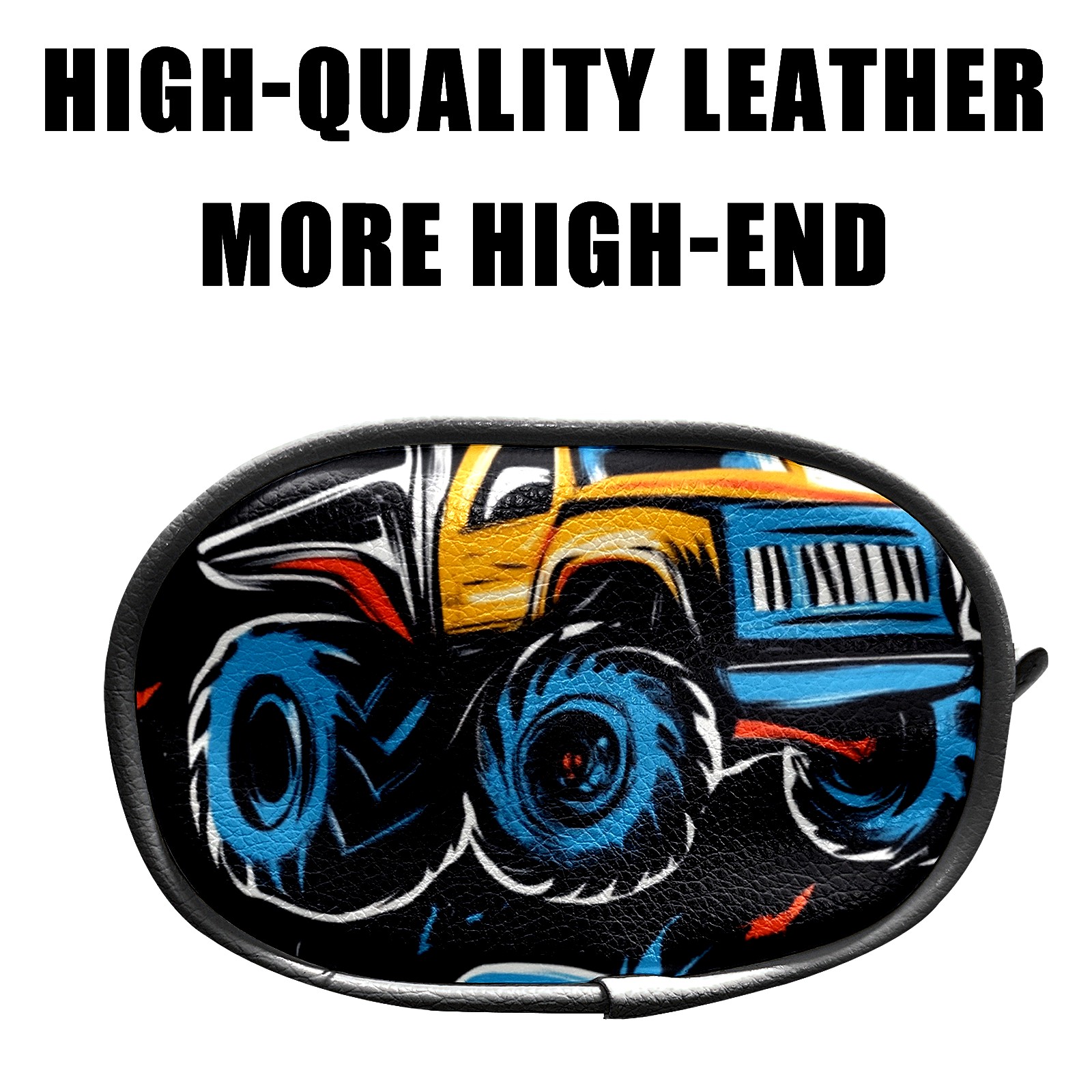 Golf Ball Waist Bag PU Leather Golf Ball Pouch with Belt Clip, Portable Golf Tee Holder & Golf Accessories for Men Women, Golfing Fanny Pack for Balls Tees Valuables (Monster Trucks)