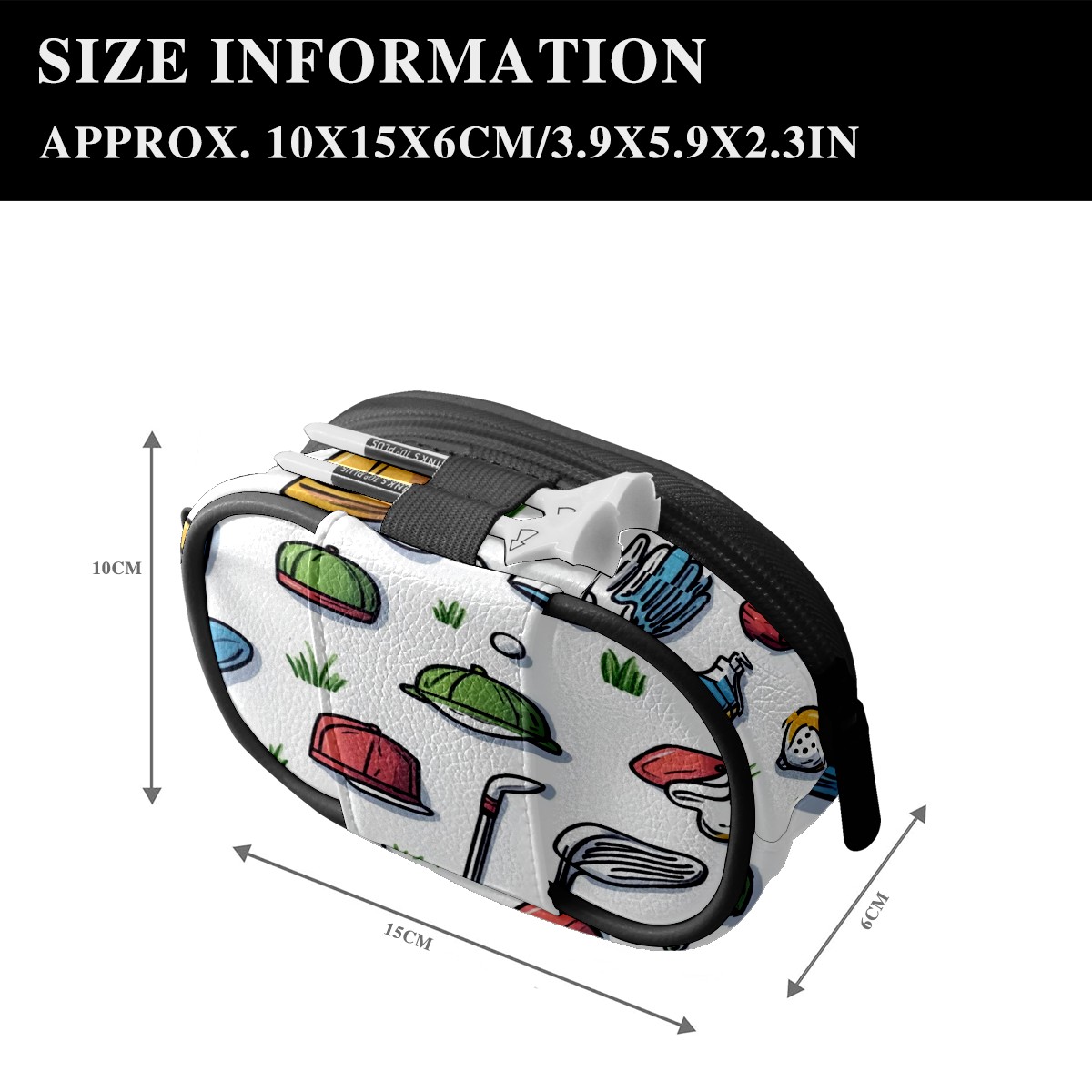 Golf Ball Waist Bag PU Leather Golf Ball Pouch with Belt Clip, Portable Golf Tee Holder & Golf Accessories for Men Women, Golfing Fanny Pack for Balls Tees Valuables (Golf Elements)