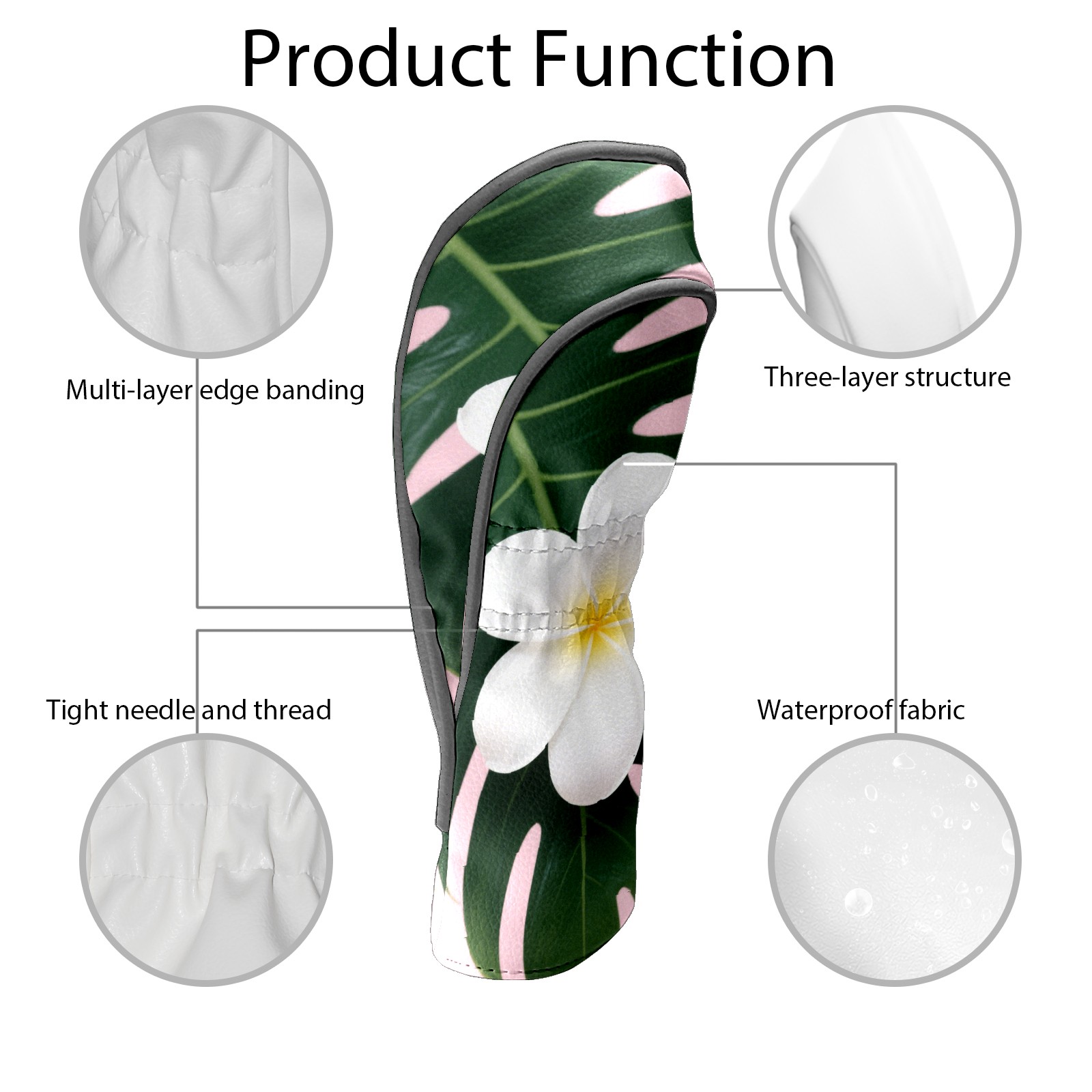Golf Head Covers Driver Club Head Cover for Drivers Fairway Woods and Hybrid Clubs PU Leather Golf Club Head Covers for Men and Women Colored Flowers