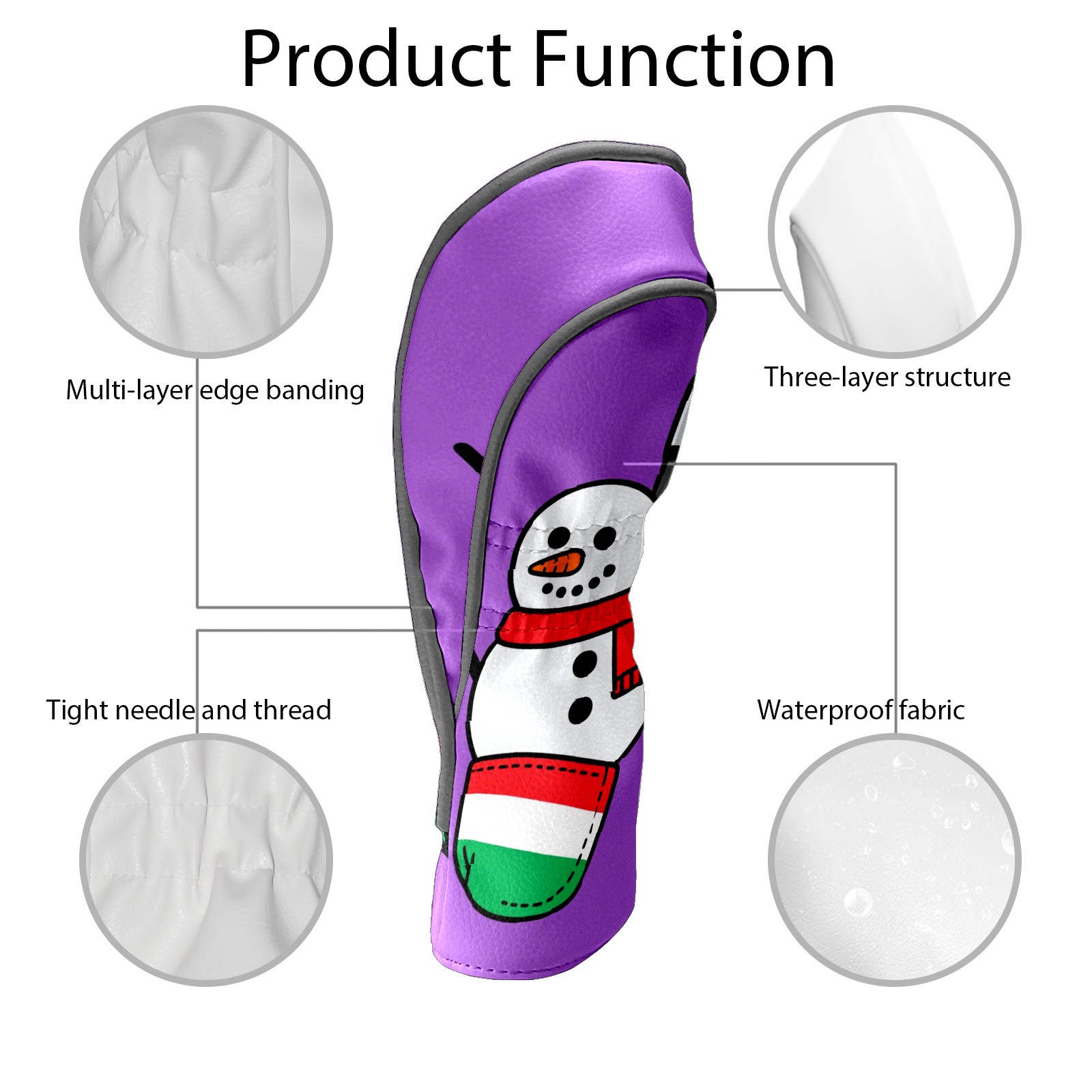 Golf Head Covers Driver Club Head Cover for Drivers Fairway Woods and Hybrid Clubs PU Leather Golf Club Head Covers for Men and Women Golfing Snowman