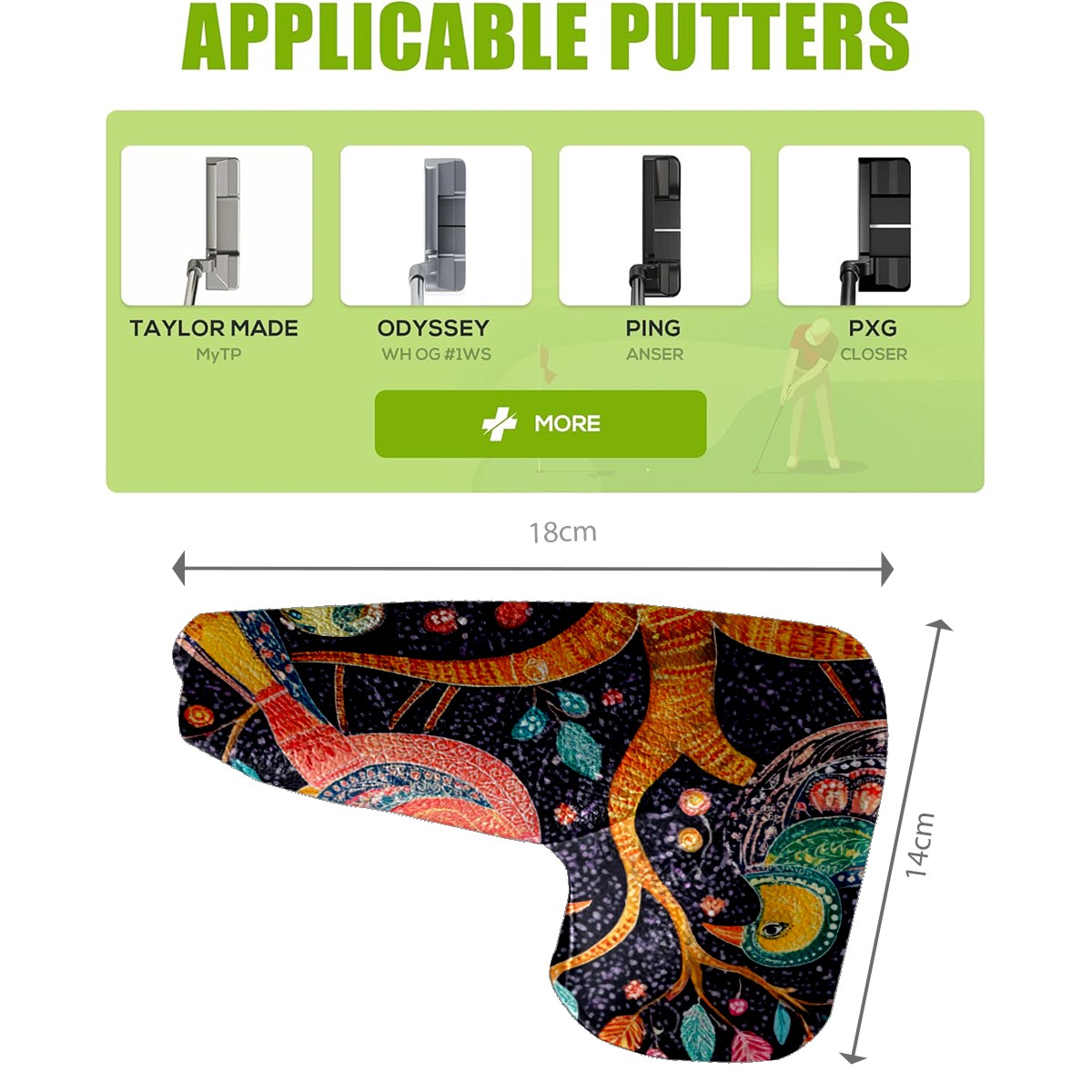 • <p>This golf club cover, made of high quality PU leather, combines durability with water and stain resistance to easily cope with complex outdoor environments. The soft velvet lining on the inside of the cover fits the clubs snugly, cushioning them from impact and preventing scratches and abrasions in every way. It's easy to clean, and can be gently scrubbed to keep your clubs in good condition. 14x18cm is the perfect size for all types of clubs, and it's stable and won't wobble. Whether for personal use or as a gift, the thoughtful and practical design makes it an ideal gift for golf enthusiasts on birthdays and festivals, adding a unique style to the bag.</p>