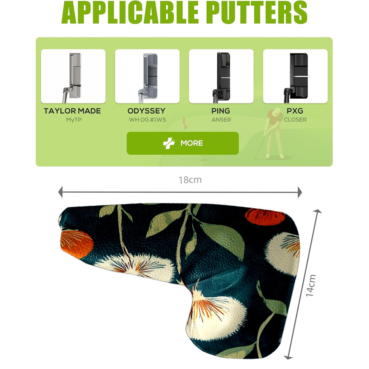 • <p>This golf club cover, made of high quality PU leather, combines durability with water and stain resistance to easily cope with complex outdoor environments. The soft velvet lining on the inside of the cover fits the clubs snugly, cushioning them from impact and preventing scratches and abrasions in every way. It's easy to clean, and can be gently scrubbed to keep your clubs in good condition. 14x18cm is the perfect size for all types of clubs, and it's stable and won't wobble. Whether for personal use or as a gift, the thoughtful and practical design makes it an ideal gift for golf enthusiasts on birthdays and festivals, adding a unique style to the bag.</p>