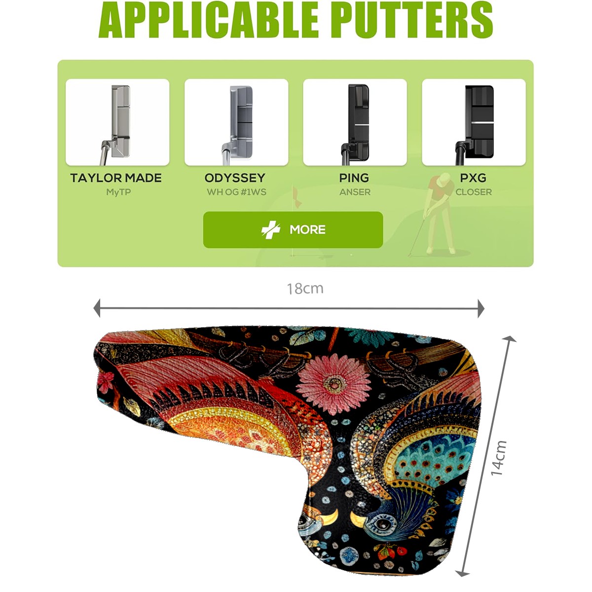 • <p>This golf club cover, made of high quality PU leather, combines durability with water and stain resistance to easily cope with complex outdoor environments. The soft velvet lining on the inside of the cover fits the clubs snugly, cushioning them from impact and preventing scratches and abrasions in every way. It's easy to clean, and can be gently scrubbed to keep your clubs in good condition. 14x18cm is the perfect size for all types of clubs, and it's stable and won't wobble. Whether for personal use or as a gift, the thoughtful and practical design makes it an ideal gift for golf enthusiasts on birthdays and festivals, adding a unique style to the bag.</p>