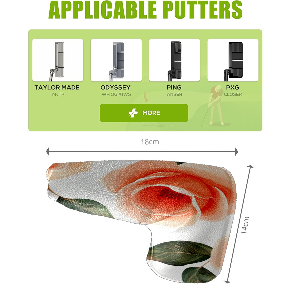 • <p>This golf club cover, made of high quality PU leather, combines durability with water and stain resistance to easily cope with complex outdoor environments. The soft velvet lining on the inside of the cover fits the clubs snugly, cushioning them from impact and preventing scratches and abrasions in every way. It's easy to clean, and can be gently scrubbed to keep your clubs in good condition. 14x18cm is the perfect size for all types of clubs, and it's stable and won't wobble. Whether for personal use or as a gift, the thoughtful and practical design makes it an ideal gift for golf enthusiasts on birthdays and festivals, adding a unique style to the bag.</p>