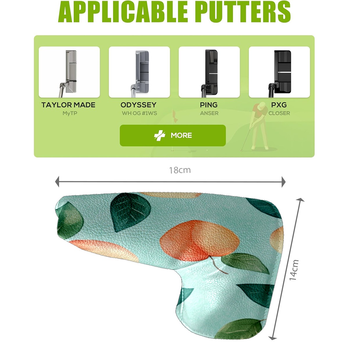• <p>This golf club cover, made of high quality PU leather, combines durability with water and stain resistance to easily cope with complex outdoor environments. The soft velvet lining on the inside of the cover fits the clubs snugly, cushioning them from impact and preventing scratches and abrasions in every way. It's easy to clean, and can be gently scrubbed to keep your clubs in good condition. 14x18cm is the perfect size for all types of clubs, and it's stable and won't wobble. Whether for personal use or as a gift, the thoughtful and practical design makes it an ideal gift for golf enthusiasts on birthdays and festivals, adding a unique style to the bag.</p>