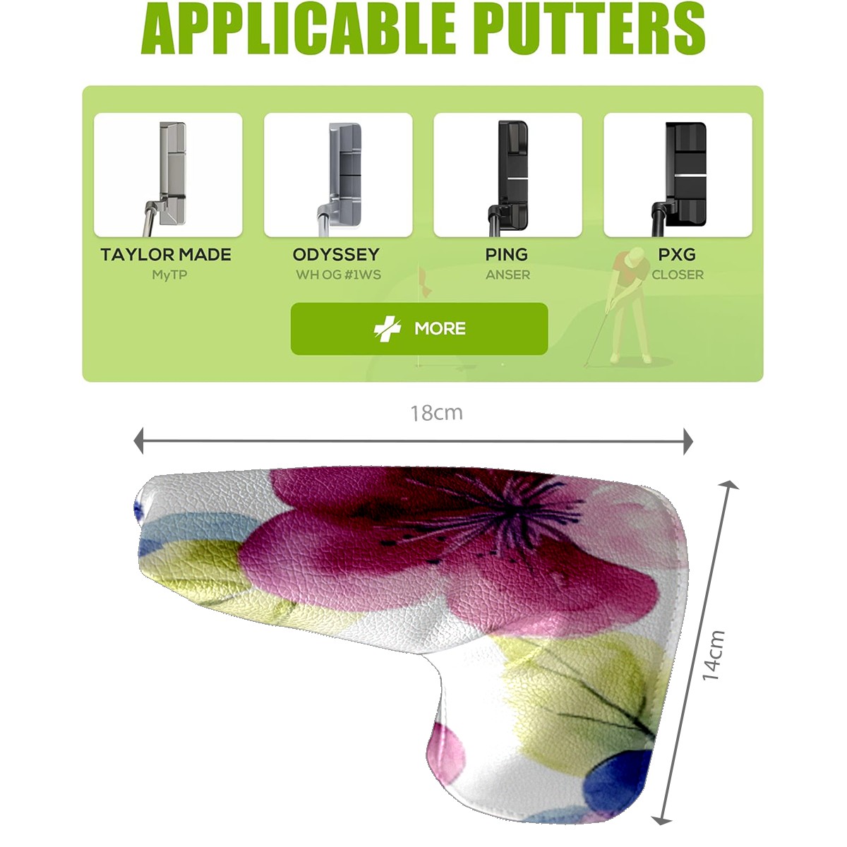 • <p>This golf club cover, made of high quality PU leather, combines durability with water and stain resistance to easily cope with complex outdoor environments. The soft velvet lining on the inside of the cover fits the clubs snugly, cushioning them from impact and preventing scratches and abrasions in every way. It's easy to clean, and can be gently scrubbed to keep your clubs in good condition. 14x18cm is the perfect size for all types of clubs, and it's stable and won't wobble. Whether for personal use or as a gift, the thoughtful and practical design makes it an ideal gift for golf enthusiasts on birthdays and festivals, adding a unique style to the bag.</p>