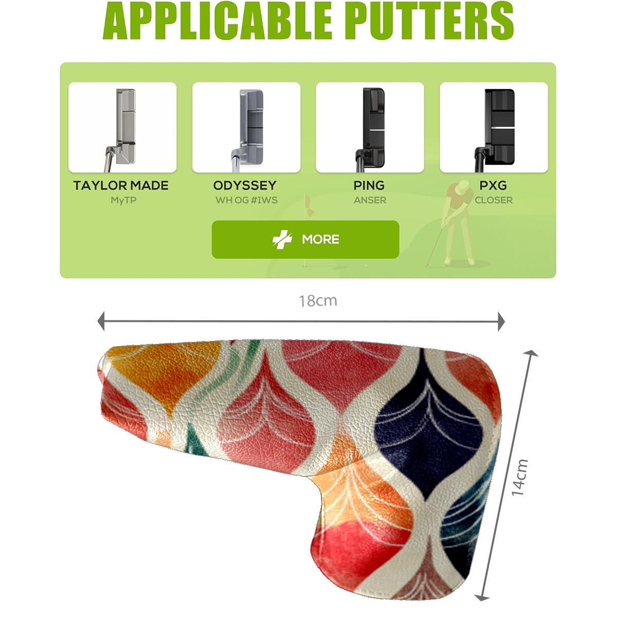 • <p>This golf club cover, made of high quality PU leather, combines durability with water and stain resistance to easily cope with complex outdoor environments. The soft velvet lining on the inside of the cover fits the clubs snugly, cushioning them from impact and preventing scratches and abrasions in every way. It's easy to clean, and can be gently scrubbed to keep your clubs in good condition. 14x18cm is the perfect size for all types of clubs, and it's stable and won't wobble. Whether for personal use or as a gift, the thoughtful and practical design makes it an ideal gift for golf enthusiasts on birthdays and festivals, adding a unique style to the bag.</p>
