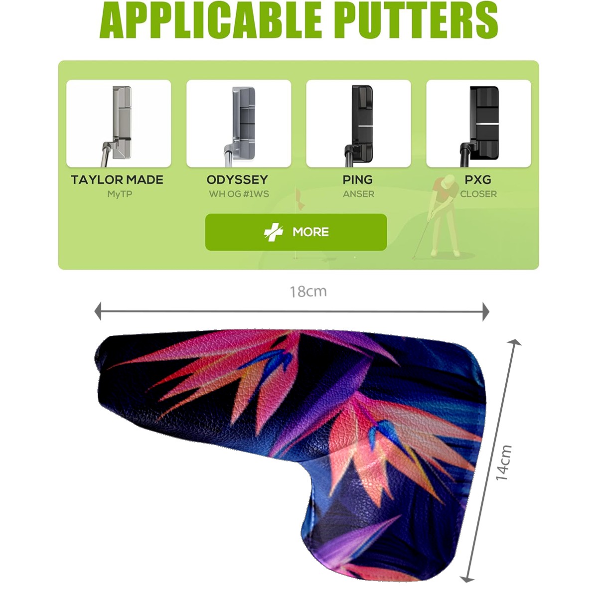 • <p>This golf club cover, made of high quality PU leather, combines durability with water and stain resistance to easily cope with complex outdoor environments. The soft velvet lining on the inside of the cover fits the clubs snugly, cushioning them from impact and preventing scratches and abrasions in every way. It's easy to clean, and can be gently scrubbed to keep your clubs in good condition. 14x18cm is the perfect size for all types of clubs, and it's stable and won't wobble. Whether for personal use or as a gift, the thoughtful and practical design makes it an ideal gift for golf enthusiasts on birthdays and festivals, adding a unique style to the bag.</p>
