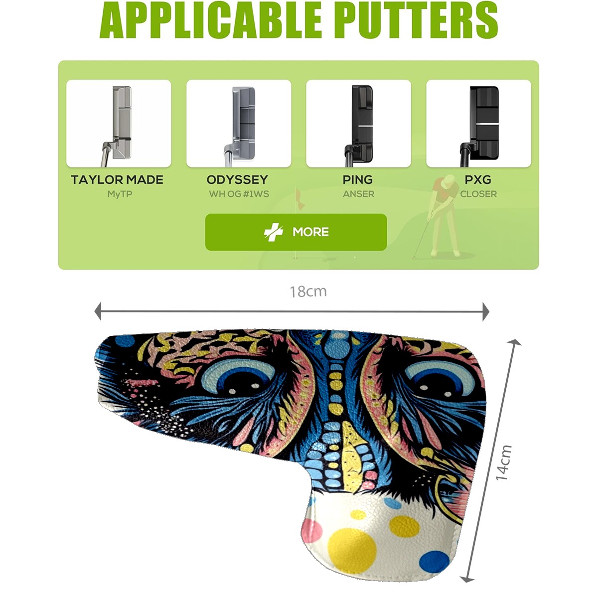 • <p>This golf club cover, made of high quality PU leather, combines durability with water and stain resistance to easily cope with complex outdoor environments. The soft velvet lining on the inside of the cover fits the clubs snugly, cushioning them from impact and preventing scratches and abrasions in every way. It's easy to clean, and can be gently scrubbed to keep your clubs in good condition. 14x18cm is the perfect size for all types of clubs, and it's stable and won't wobble. Whether for personal use or as a gift, the thoughtful and practical design makes it an ideal gift for golf enthusiasts on birthdays and festivals, adding a unique style to the bag.</p>