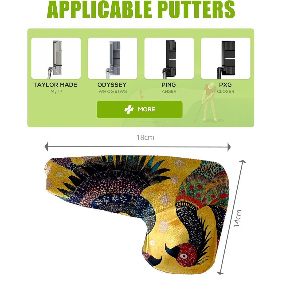 • <p>This golf club cover, made of high quality PU leather, combines durability with water and stain resistance to easily cope with complex outdoor environments. The soft velvet lining on the inside of the cover fits the clubs snugly, cushioning them from impact and preventing scratches and abrasions in every way. It's easy to clean, and can be gently scrubbed to keep your clubs in good condition. 14x18cm is the perfect size for all types of clubs, and it's stable and won't wobble. Whether for personal use or as a gift, the thoughtful and practical design makes it an ideal gift for golf enthusiasts on birthdays and festivals, adding a unique style to the bag.</p>