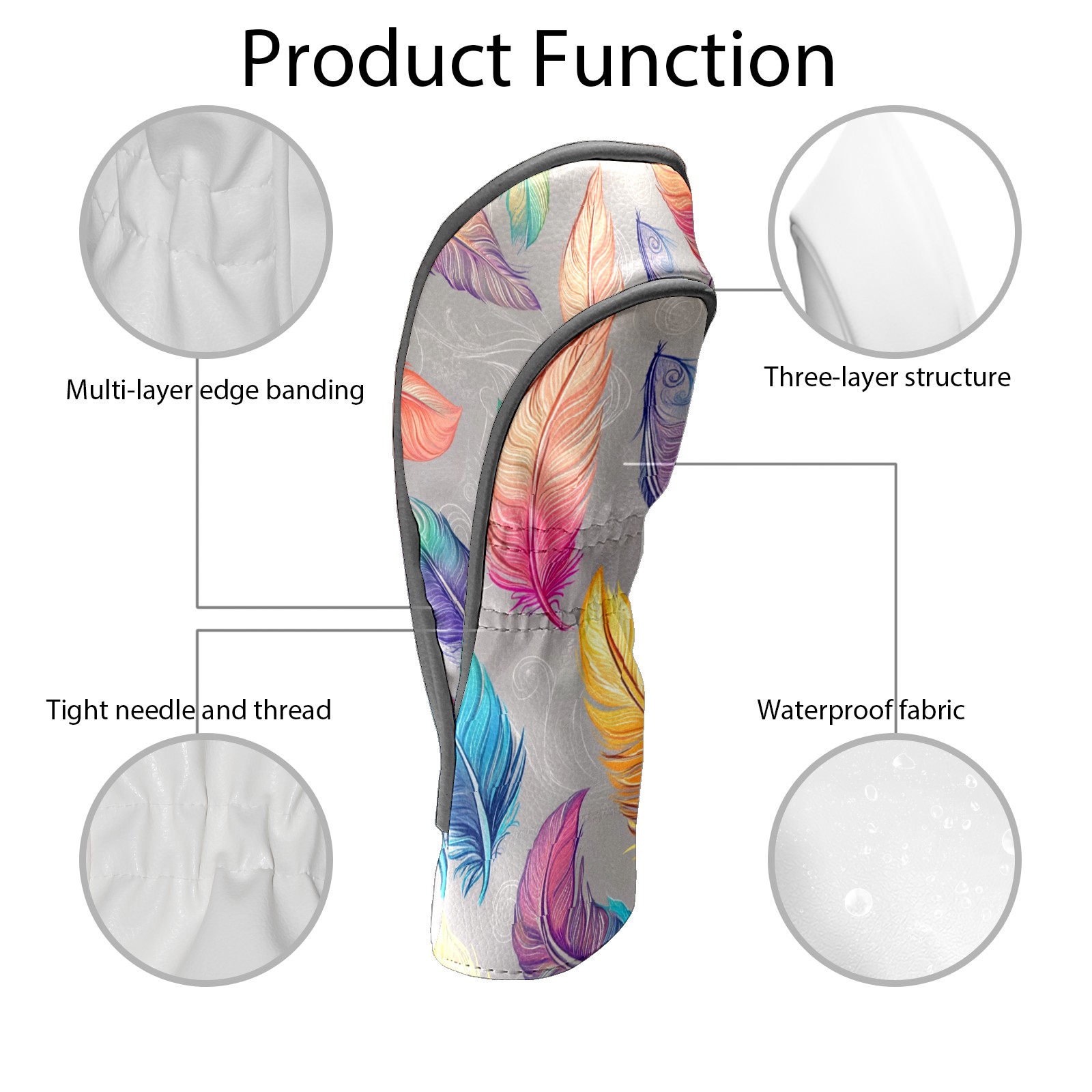 Golf Club Head Cover Golf Club Covers For driver club cover waterproof Head covers Colorful Feather7