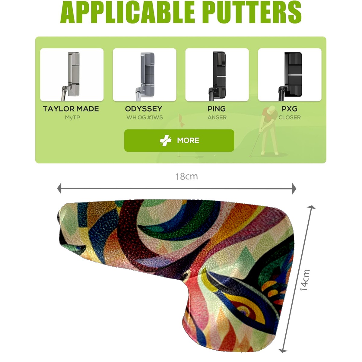 • <p>This golf club cover, made of high quality PU leather, combines durability with water and stain resistance to easily cope with complex outdoor environments. The soft velvet lining on the inside of the cover fits the clubs snugly, cushioning them from impact and preventing scratches and abrasions in every way. It's easy to clean, and can be gently scrubbed to keep your clubs in good condition. 14x18cm is the perfect size for all types of clubs, and it's stable and won't wobble. Whether for personal use or as a gift, the thoughtful and practical design makes it an ideal gift for golf enthusiasts on birthdays and festivals, adding a unique style to the bag.</p>