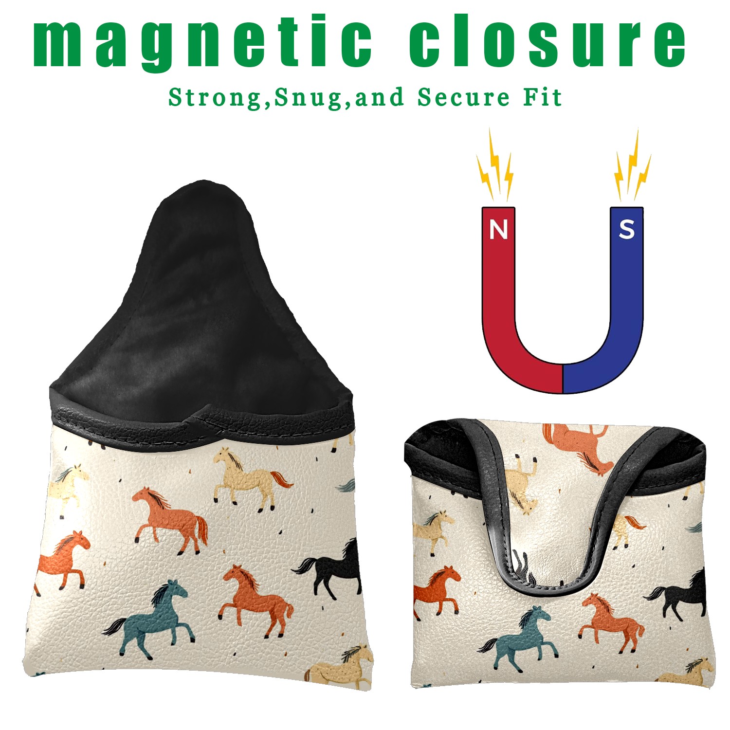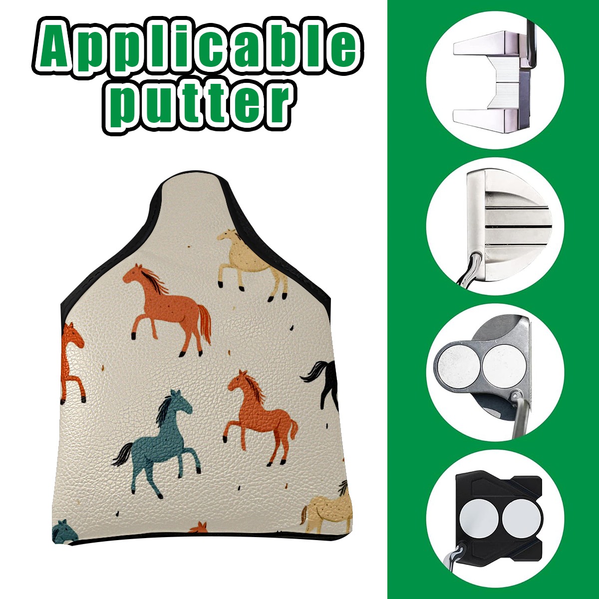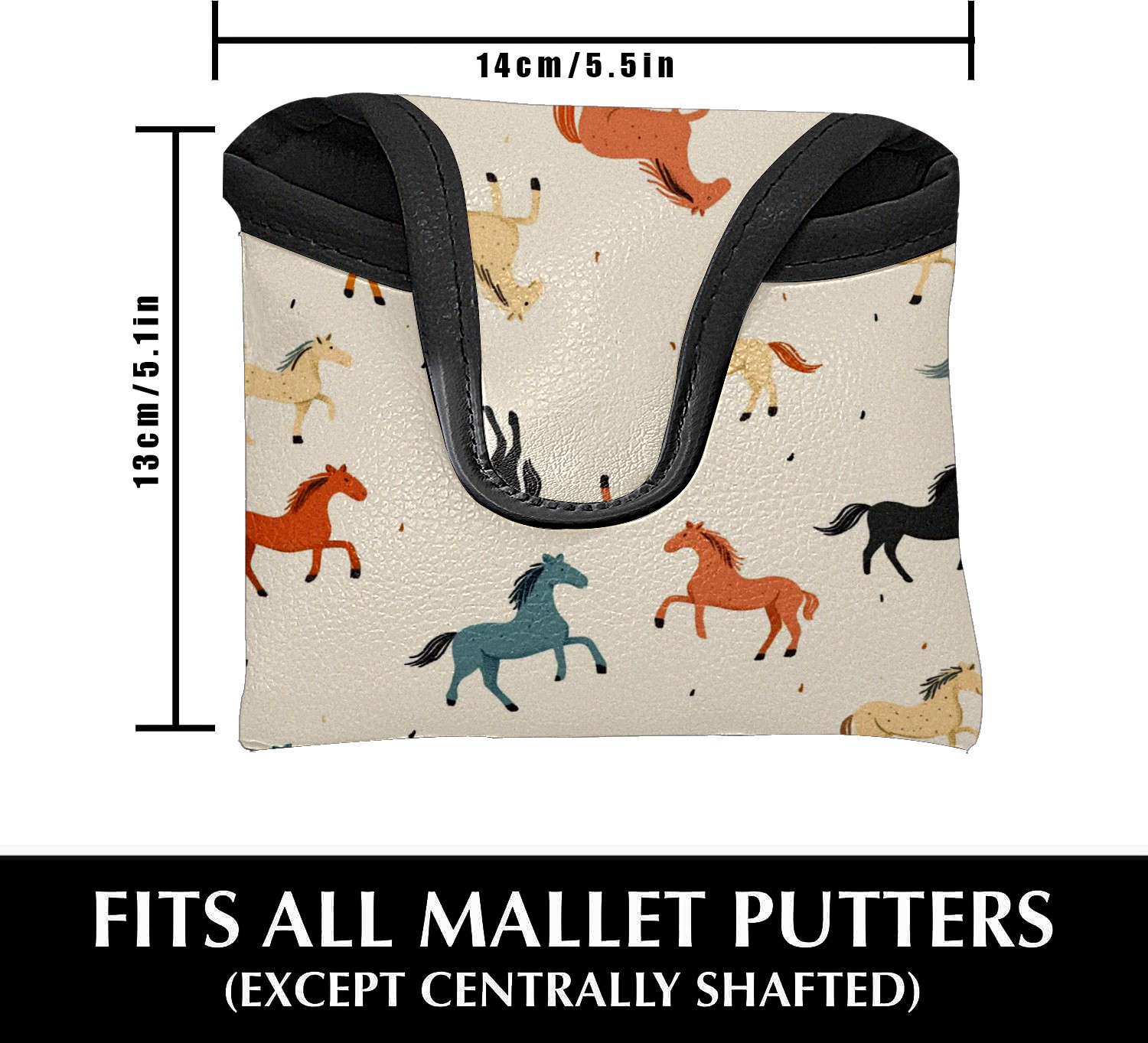 Professional Golf Club Head Covers Set for Mallet Putter - Waterproof Design with Stretchable Fit, Universal Club Protection for Men & Women (Horses)